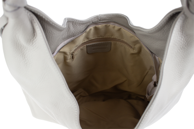 Tato stylová kabelka typu „shopping bag“ vás na první pohled zaujme svou krásnou šedou barvou a moderním, uvolněným střihem (tzv. hobo style). Je vyrobena z materiálu s jemnou zrnitou texturou, která jí dodává luxusní vzhled a je příjemná na dotek.