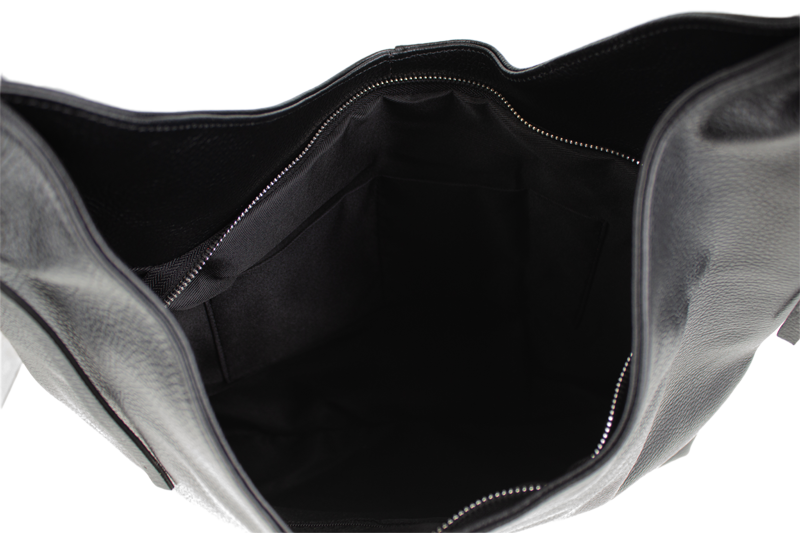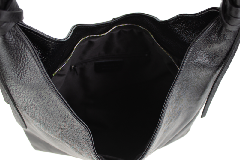 Tato stylová kabelka typu „shopping bag“ vás na první pohled zaujme svou krásnou černou barvou a moderním, uvolněným střihem (tzv. hobo style). Je vyrobena z materiálu s jemnou zrnitou texturou, která jí dodává luxusní vzhled a je příjemná na dotek.