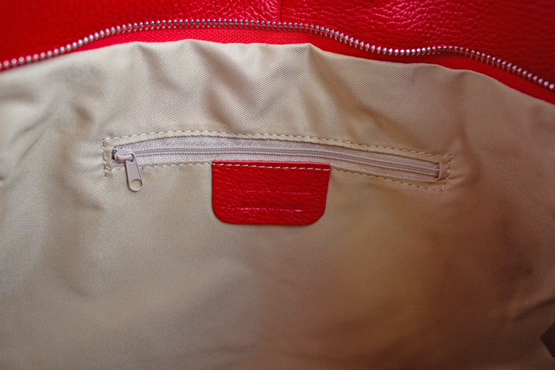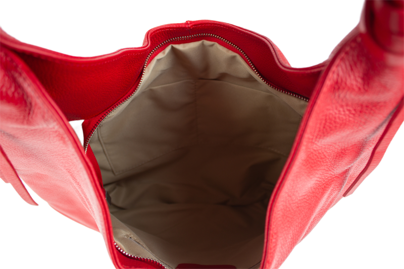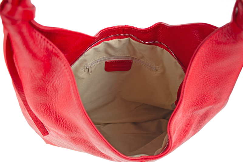 Tato stylová kabelka typu „shopping bag“ vás na první pohled zaujme svou krásnou červenou barvou a moderním, uvolněným střihem (tzv. hobo style). Je vyrobena z materiálu s jemnou zrnitou texturou, která jí dodává luxusní vzhled a je příjemná na dotek.