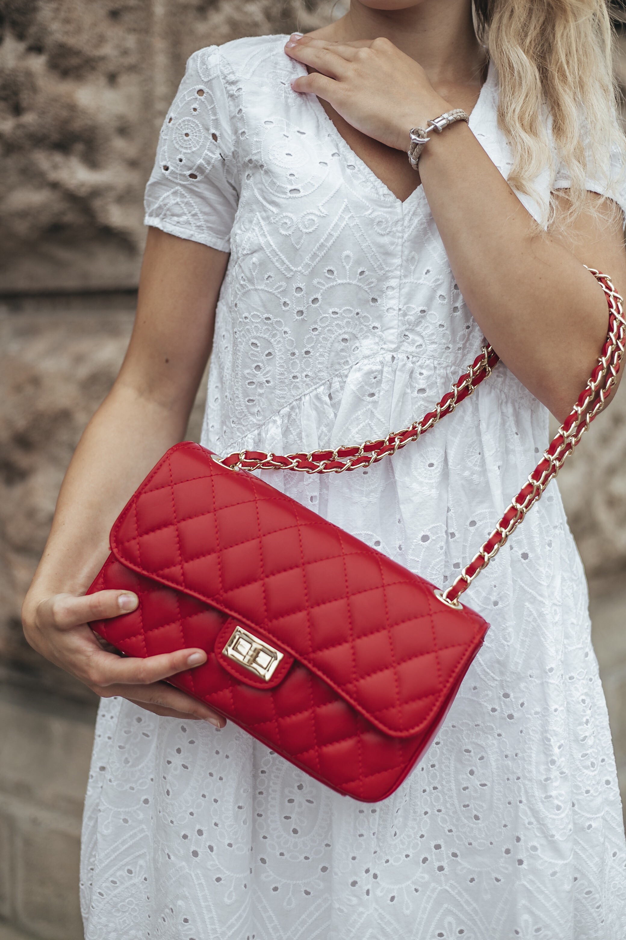 Krásná černá kabelka z měkké kůže. Tato originální kabelka určená k nošení přes rameno je vhodným doplňkem pro pravidelné nošení. Kabelka je uzavíratelná důmyslnou patentkou, která zároveň slouží jako ozdobný prvek. Uvnitř kabelky nalezneme kapsu na zip. Délka řetízku přes rameno je 120 cm.