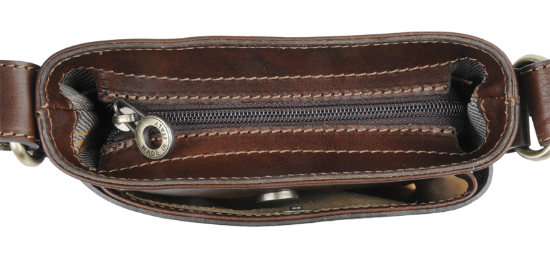 Praktická kožená unisex taška přes rameno. Kabelka se uzavírá na zip.