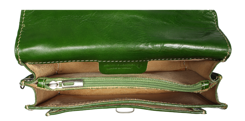Menší kožená zelená aktovka s poutkem na ruku se hodí na všechny věci, které potřebuje mít stále po ruce. Peněženka, doklady od auta, klíče a jiné drobnosti budete mít pohromadě. Aktovku lze uzamknout pomocí klíčku.