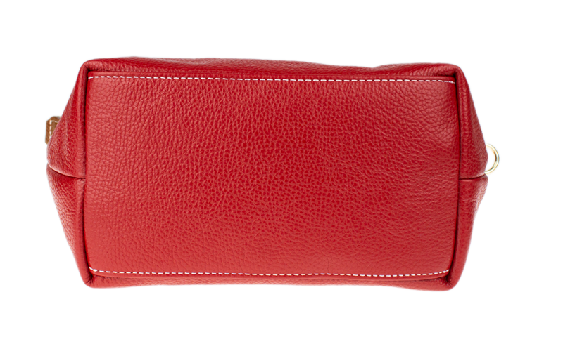 Kabelka je vyrobena z kvalitní pravé kůže s jemnou zrnitou strukturou, která je nejen příjemná na dotek, ale také odolná vůči poškrábání. Design sází na osvědčenou kombinaci červené barvy těla kabelky s kontrastními detaily v koňakovém odstínu (ucha, klopa, popruh). Celkový luxusní dojem doplňuje decentní zlaté kování a precizní světlé prošívání.