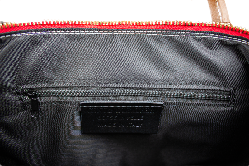 Díky promyšleným rozměrům je kabelka kompaktní, ale překvapivě prostorná. Pohodlně pojme peněženku, telefon, klíče, diář i menší kosmetickou taštičku. Hlavní úložný prostor je bezpečně uzavíratelný na zip, který je navíc krytý koženou klopou s patentkou – vaše věci tak budou vždy v bezpečí.