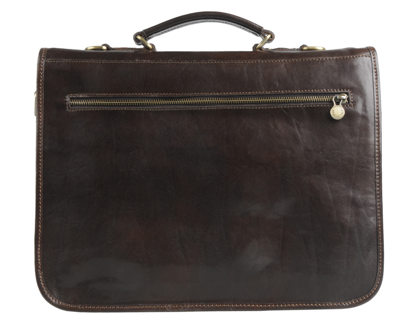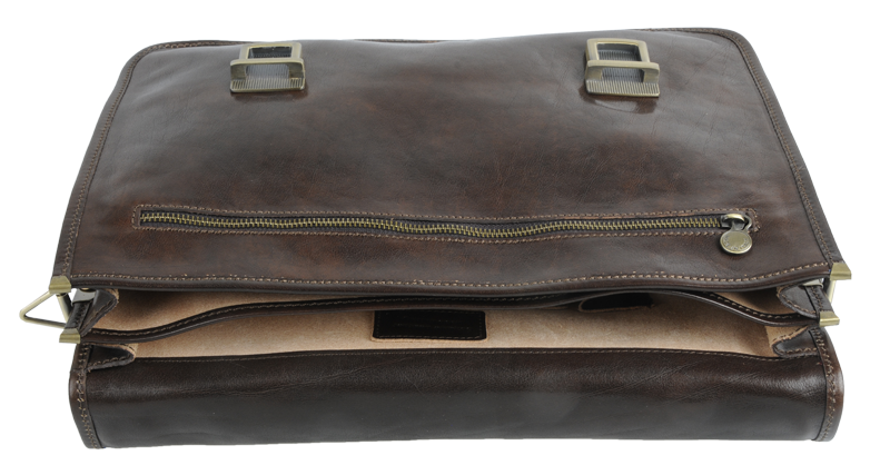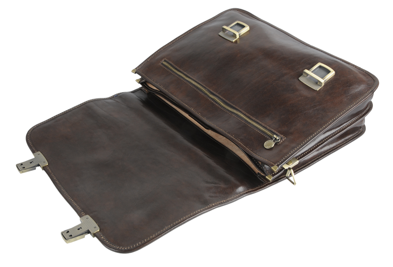 Hnědá pánská aktovka vyrobená z kvalitní kůže. Předek aktovky zdobí dvojice uzamykatelných přezek. Tato klasická aktovka je uvnitř rozdělena do dvou přihrádek, které nabízí dostatek prostoru pro Vaše dokumenty. Samozřejmostí jsou přihrádky pro mobilní telefon, drobnosti a psací potřeby. Součástí je také přídavný popruh, díky kterému je možné nosit aktovku přes rameno.