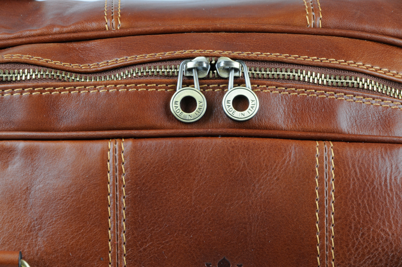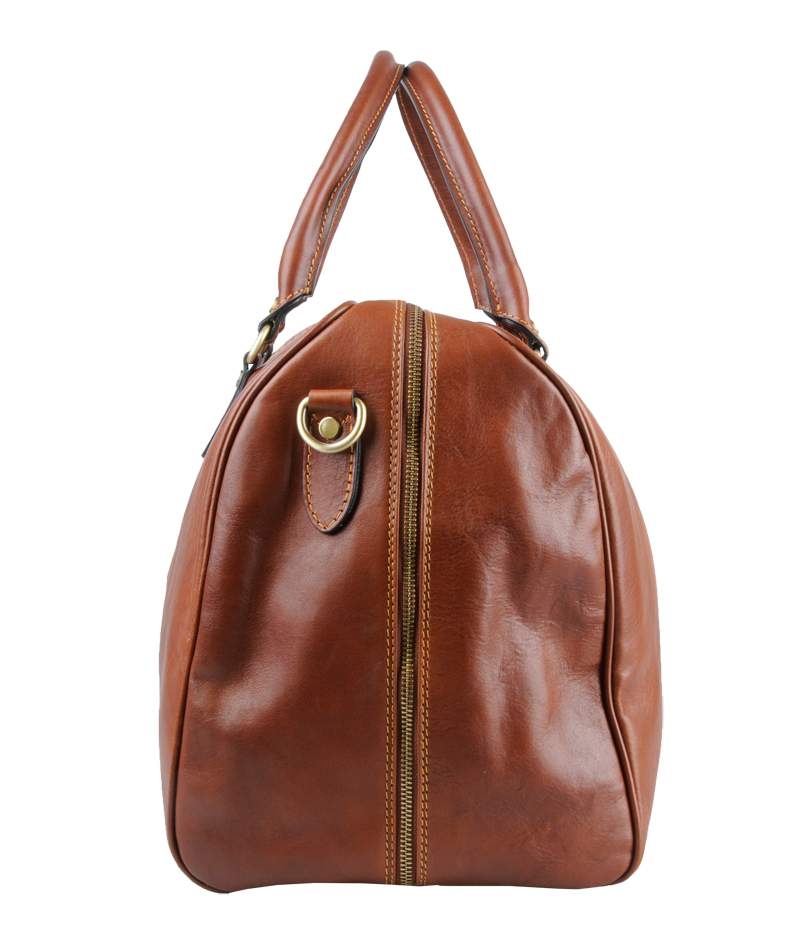 Luxusní kožená cestovní taška v hnědé barvě. Taška je vyrobena z měkčí a matné kvalitní Italské kůže. Součástí tašky je přídavný popruh o délce 107 cm. Taška se uzavírá kovovým zipem. Cestujte stylově s koženou taškou!