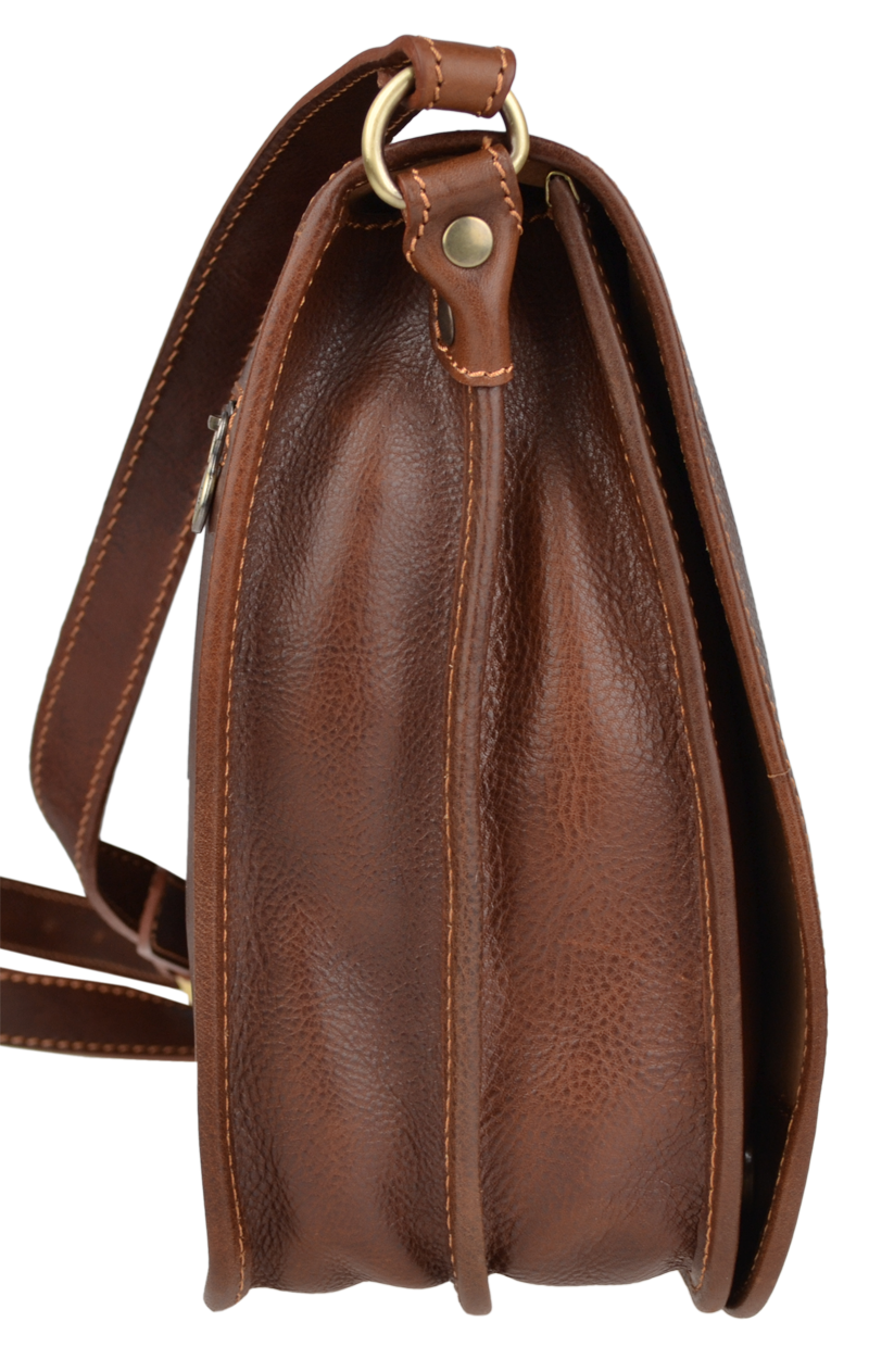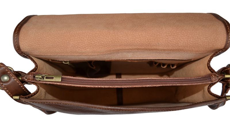 Kvalitní kožená aktovka vyrobená z pravé kůže. Aktovka velice dobře drží svůj tvar. Je vhodná pro nošení přes rameno nebo cross-body (křížem), popruh aktovky lze nastavit do 5-ti různých délek. Aktovka se uzavírá pomocí dvou patentek. Vnitřek aktovky je rozdělen na dvě části velkou kapsou na zip. Uvnitř aktovky také nalezneme kapsu pro mobil nebo jiné drobné předměty. Do aktovky se bez problému vejdou dokumenty formátu A4. Max. délka popruhu je 120 cm.