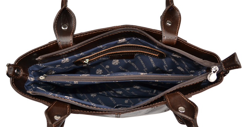 Praktická a prostorná kožená kabelka v cafe barvě. Jednoduché provedení a velký prostor dělá tuto kabelku neobyčejně praktickou pro denní nošení. Vnitřek kabelky je vybaven kapsou na zip a dvěma malými přihrádkami.