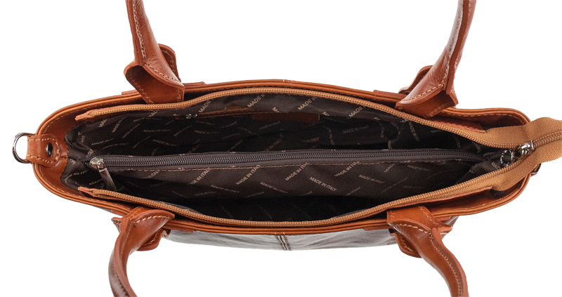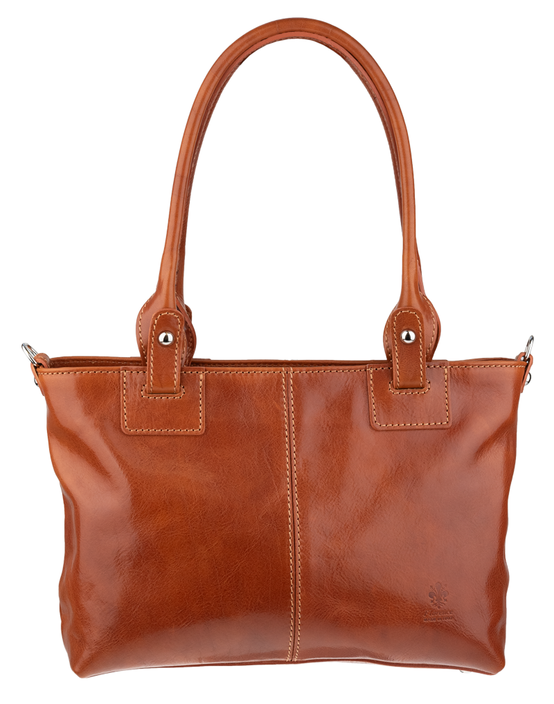 Praktická a prostorná kožená kabelka v camel barvě. Jednoduché provedení a velký prostor dělá tuto kabelku neobyčejně praktickou pro denní nošení. Vnitřek kabelky je vybaven kapsou na zip a dvěma malými přihrádkami.