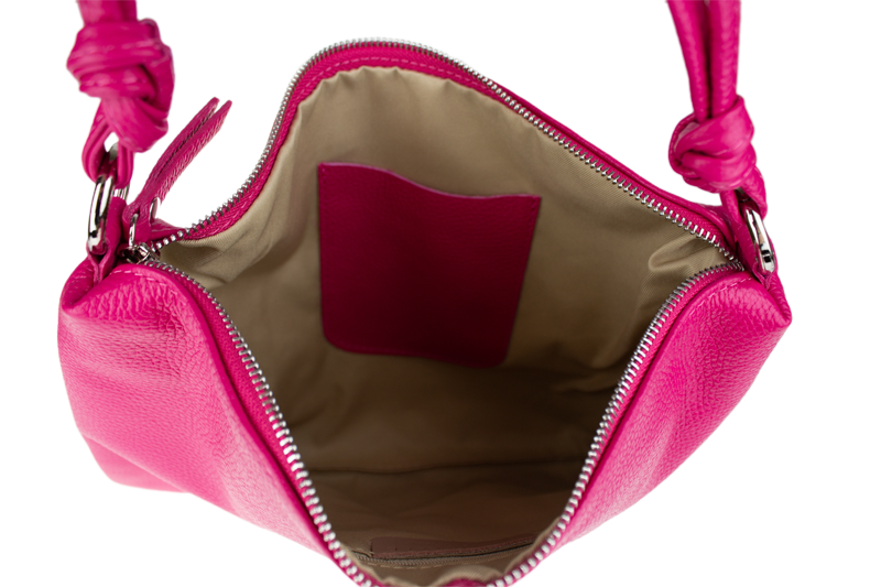 Kabelka je navržena pro maximální komfort. Pohodlné ramenní popruhy, které jsou elegantně zakončeny uzly a stříbrnými detaily, zajišťují příjemné nošení po celý den.