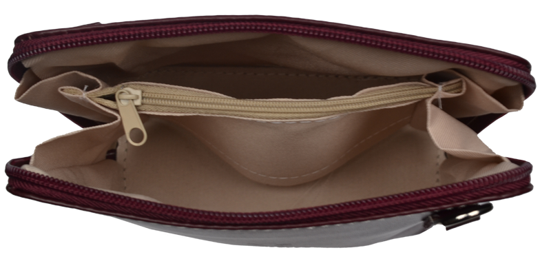 Elegantní, ale zároveň velmi praktická fialová kabelka malých rozměrů vyrobena z pravé kůže. Díky tenkému pásku je nositelná přes rameno. Zip, kterým se uzavírá, vede po hraně kabelky až po spodní okraj na obou stranách, a proto je její vnitřek dobře dostupný. Na vnější zadní straně najdete na kabelce malou kapsu na zip a uvnitř dělí celý prostor na dvě části příčka, která současně slouží jako kapsa na zip. Hloubka jejího dna je 8 cm. Délka přídavného popruhu je cca 120 cm.