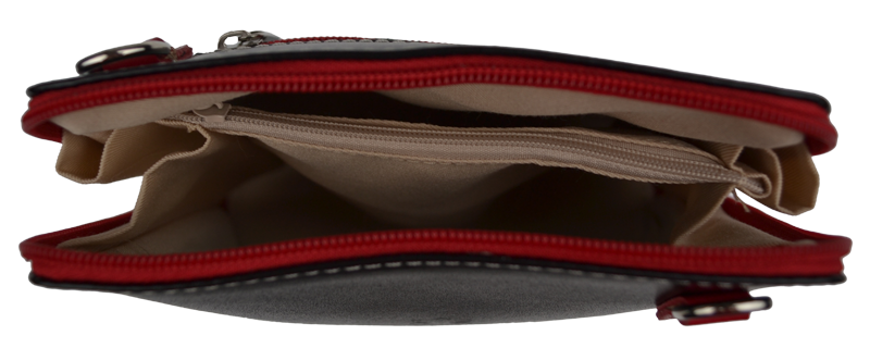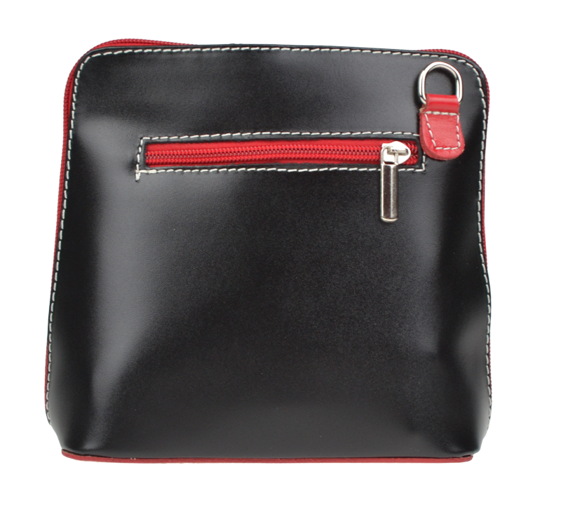 Elegantní, ale zároveň velmi praktická kabelka malých rozměrů vyrobena z pravé černé kůže. Díky tenkému pásku je nositelná přes rameno. Zip, kterým se uzavírá, vede po hraně kabelky až po spodní okraj na obou stranách, a proto je její vnitřek dobře dostupný. Na vnější zadní straně najdete na kabelce malou kapsu na zip a uvnitř dělí celý prostor na dvě části příčka, která současně slouží jako kapsa na zip. Hloubka jejího dna je 8 cm. Délka přídavného popruhu je cca 120 cm.