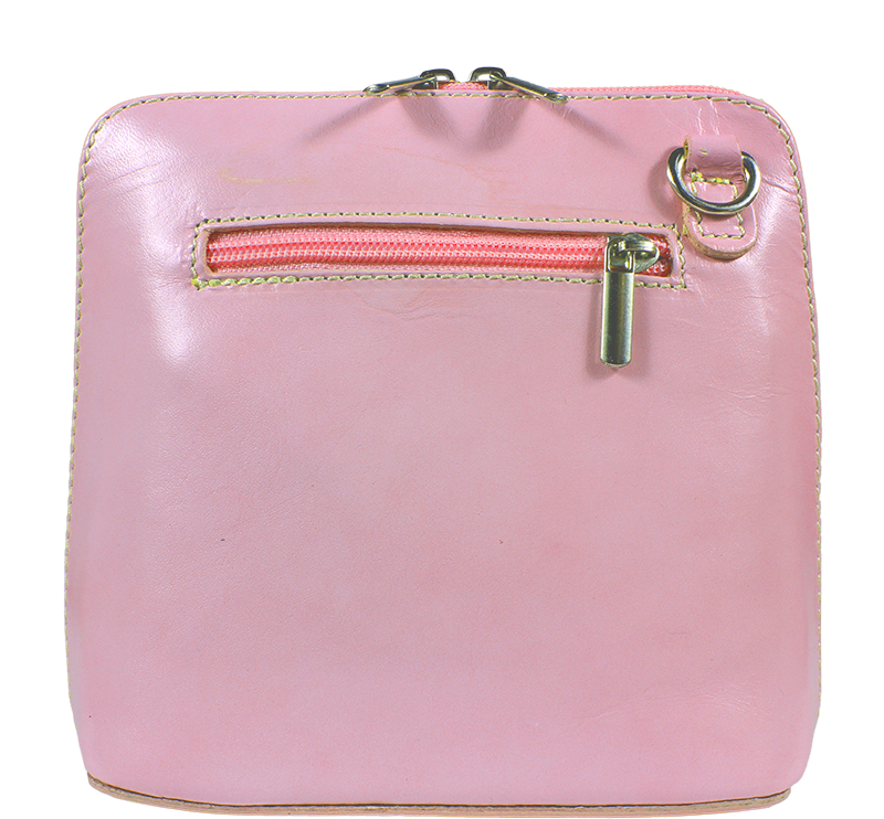 Elegantní, ale zároveň velmi praktická růžová kabelka malých rozměrů vyrobena z pravé kůže. Díky tenkému pásku je nositelná přes rameno. Zip, kterým se uzavírá, vede po hraně kabelky až po spodní okraj na obou stranách, a proto je její vnitřek dobře dostupný. Na vnější zadní straně najdete na kabelce malou kapsu na zip a uvnitř dělí celý prostor na dvě části příčka, která současně slouží jako kapsa na zip. Hloubka jejího dna je 8 cm. Délka přídavného popruhu je cca 120 cm.