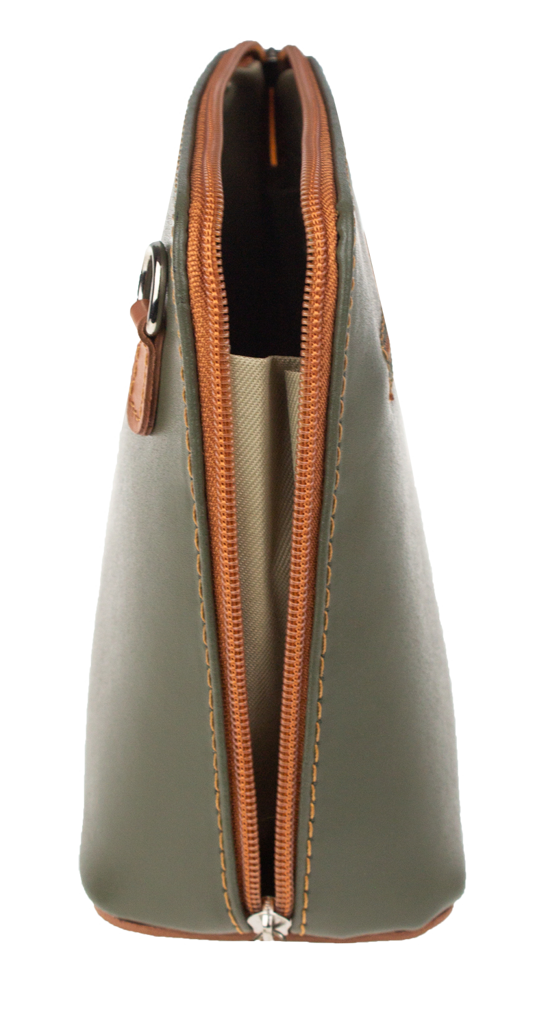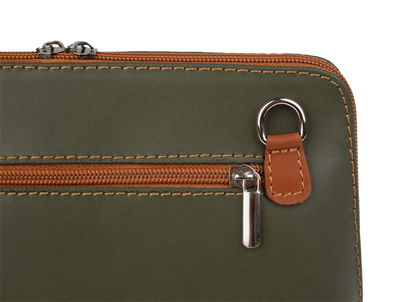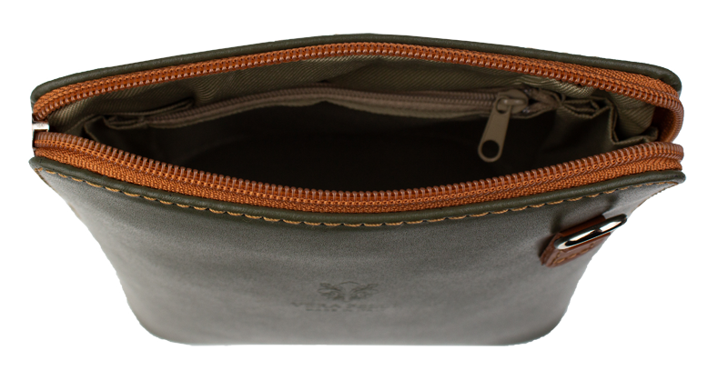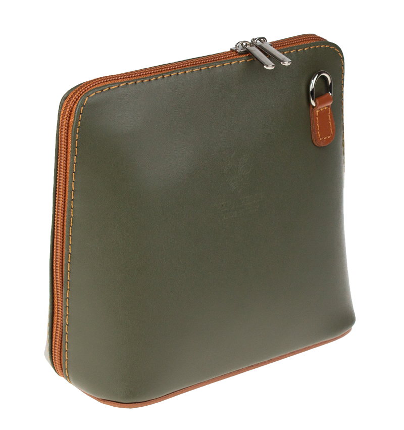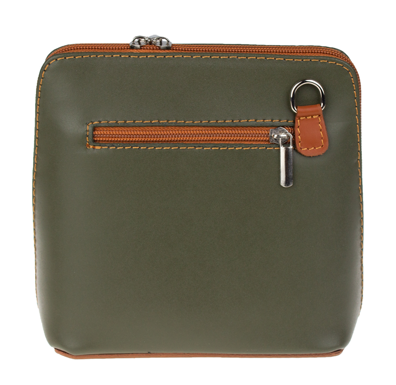 Elegantní, ale zároveň velmi praktická zelená kabelka malých rozměrů vyrobena z pravé kůže. Díky tenkému pásku je nositelná přes rameno. Zip, kterým se uzavírá, vede po hraně kabelky až po spodní okraj na obou stranách, a proto je její vnitřek dobře dostupný. Na vnější zadní straně najdete na kabelce malou kapsu na zip a uvnitř dělí celý prostor na dvě části příčka, která současně slouží jako kapsa na zip. Hloubka jejího dna je 8 cm. Délka přídavného popruhu je cca 120 cm.