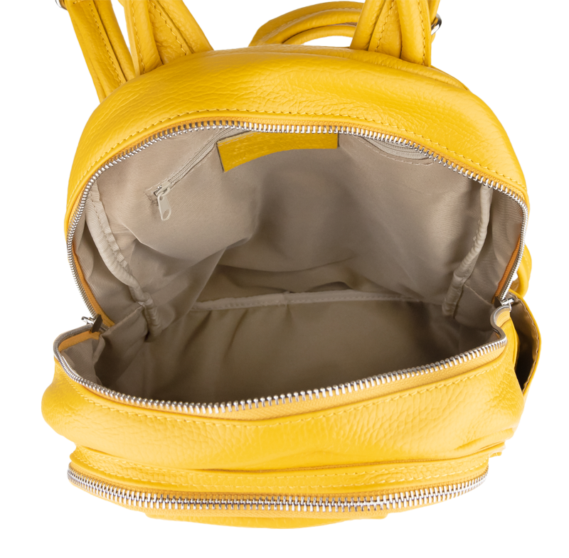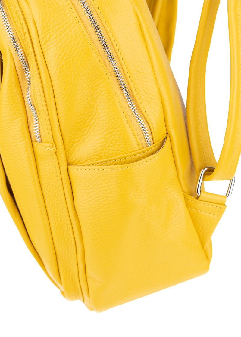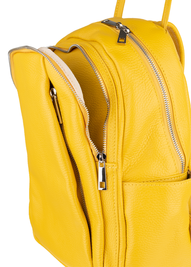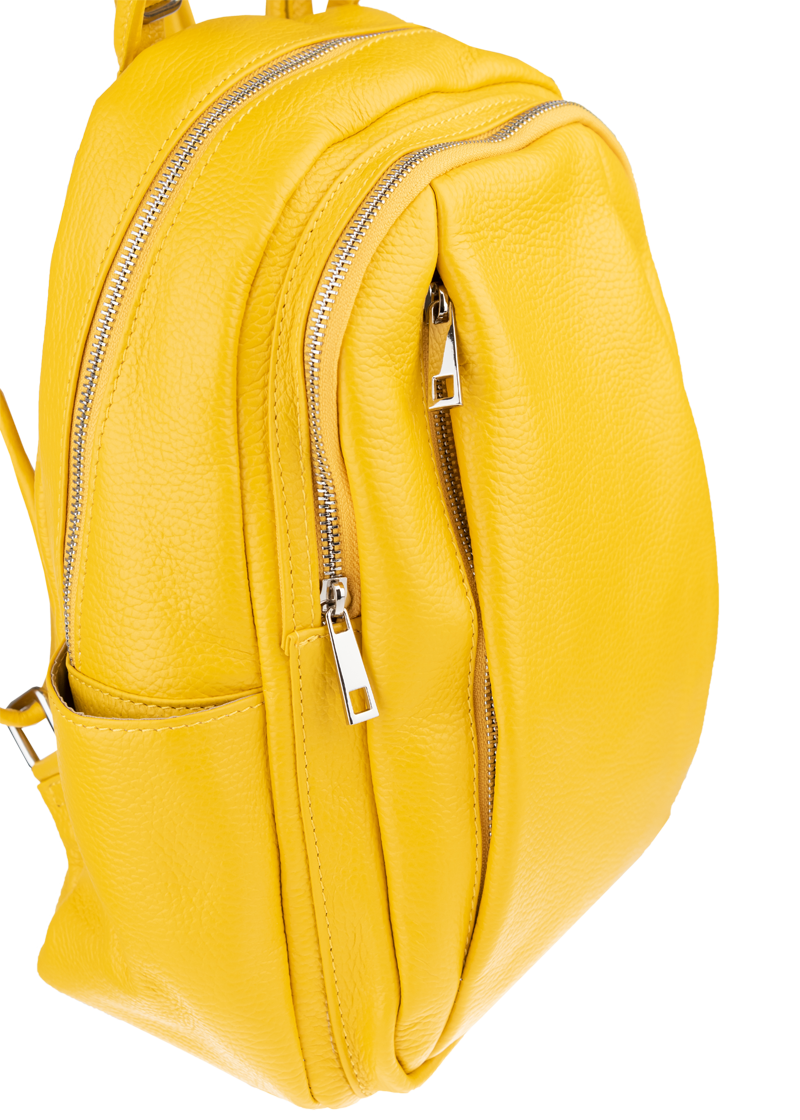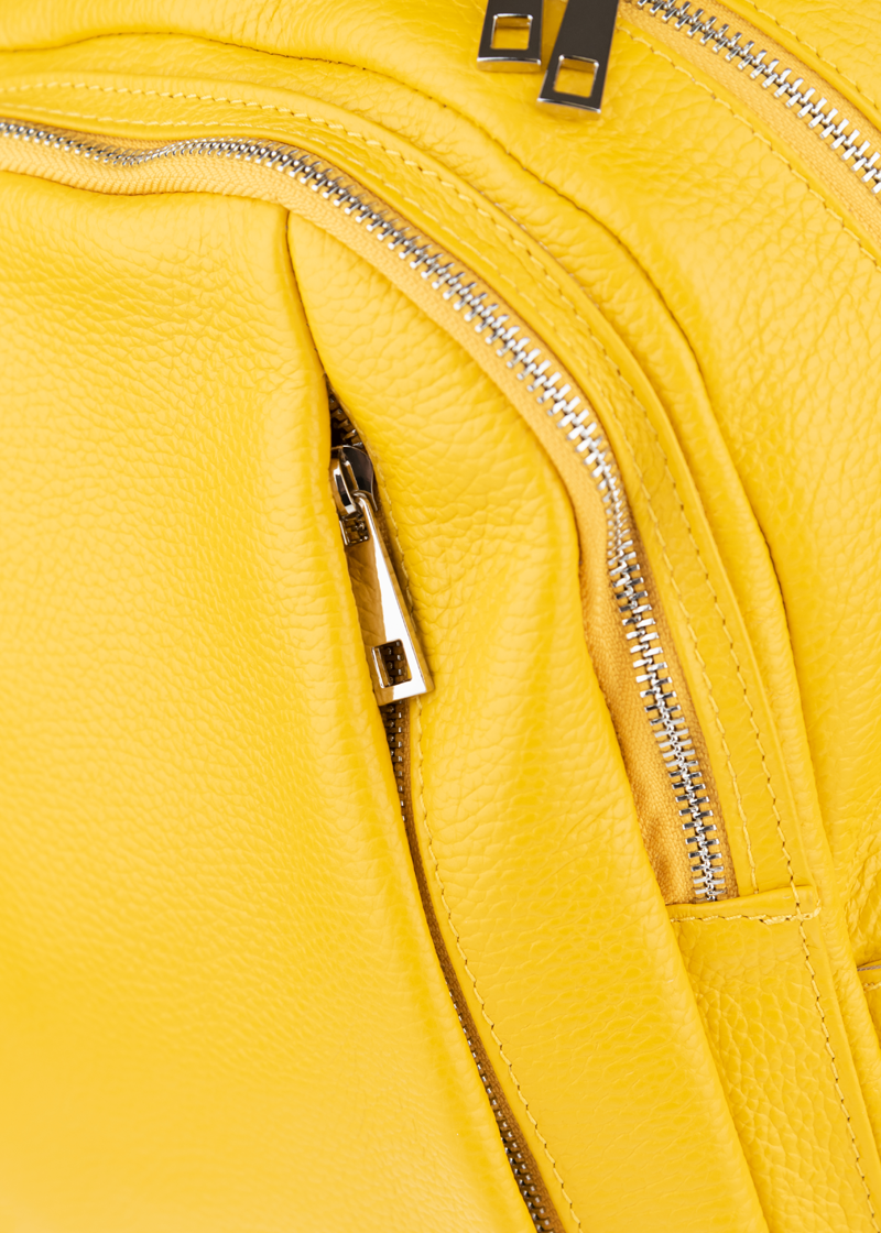 Žlutý kožený batůžek, se stříbrnými kovovými doplňky a zipy. Další barevné varianty batůžku Ilaria naleznete zde.