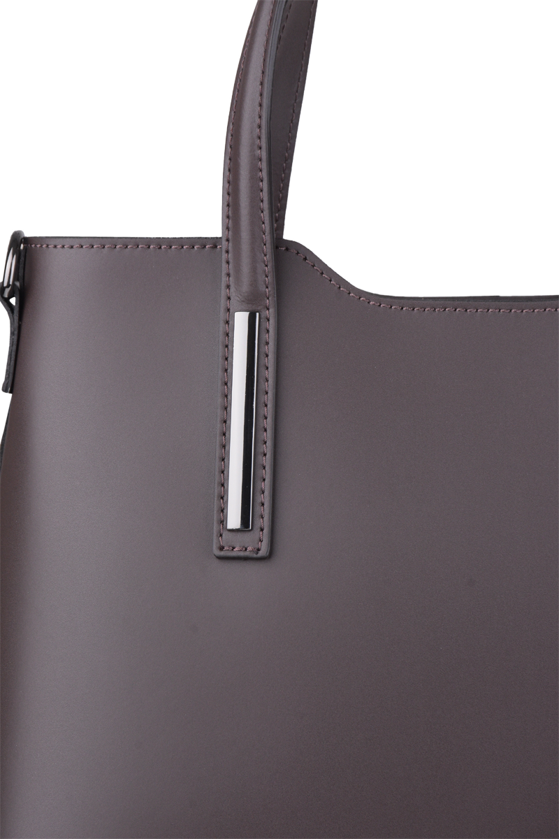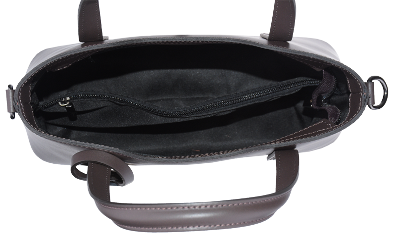 Praktická kabelka v cafe provedení pro každodenní nošení vyrobená z pevné pravé kůže. Nosí se v ruce nebo na rameni. Kabelka je uzavíratelná na zip. Součástí balení je přídavný popruh – cca 107 cm v plné délce. Uvnitř kabelky najdeme přepážku uprostřed, která zároveň slouží jako kapsa na zip, a na bočních stěnách pak kapsu na zip a 2 malé kapsy vhodné např. pro mobil a peněženku.