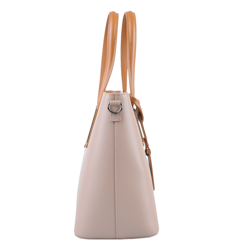 Praktická kabelka v šedo-hnědém provedení pro každodenní nošení vyrobená z pevné pravé kůže. Nosí se v ruce nebo na rameni. Kabelka je uzavíratelná na zip. Součástí balení je přídavný popruh – cca 107 cm v plné délce. Uvnitř kabelky najdeme přepážku uprostřed, která zároveň slouží jako kapsa na zip, a na bočních stěnách pak kapsu na zip a 2 malé kapsy vhodné např. pro mobil a peněženku.