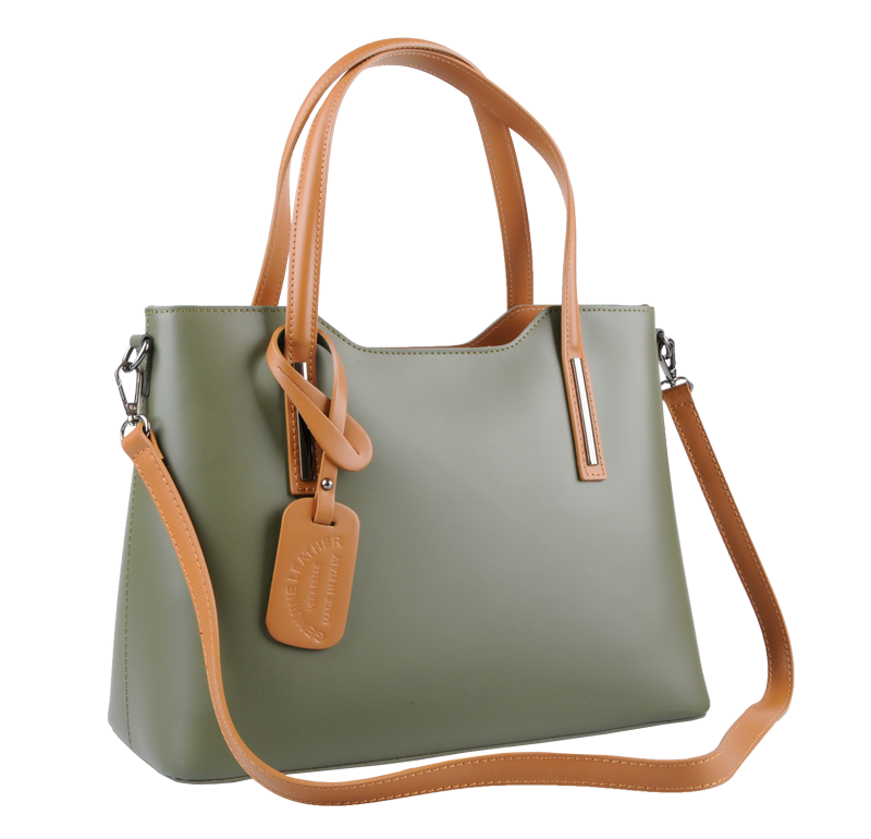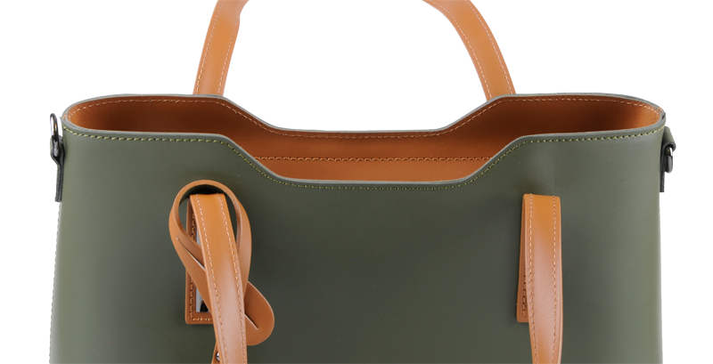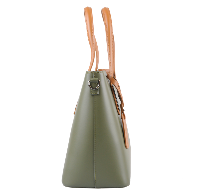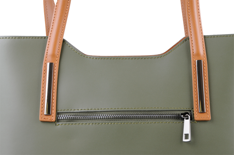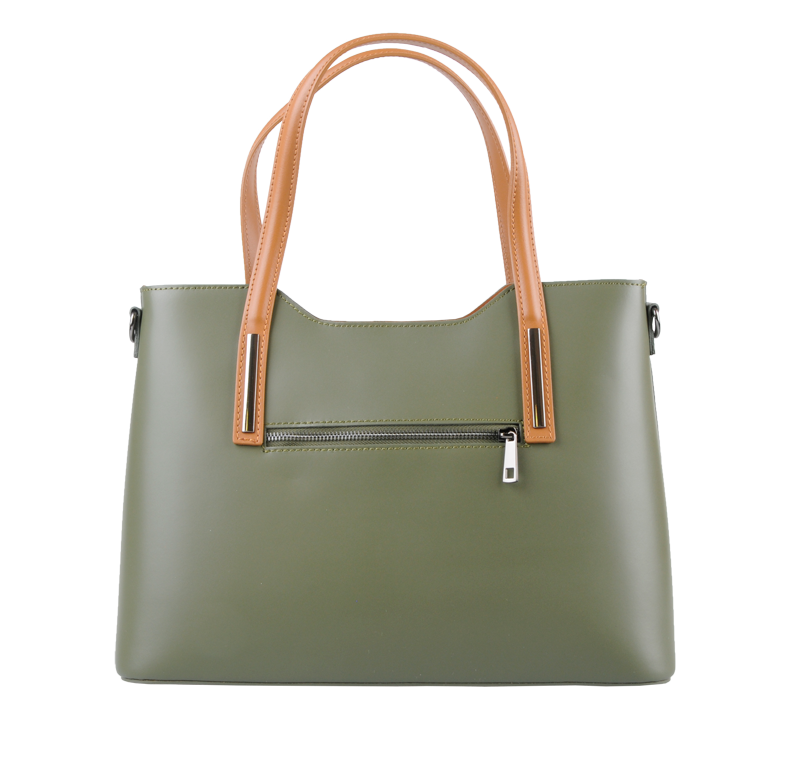 Praktická kabelka v zeleném provedení pro každodenní nošení vyrobená z pevné pravé kůže. Nosí se v ruce nebo na rameni. Kabelka je uzavíratelná na zip. Součástí balení je přídavný popruh – cca 107 cm v plné délce. Uvnitř kabelky najdeme přepážku uprostřed, která zároveň slouží jako kapsa na zip, a na bočních stěnách pak kapsu na zip a 2 malé kapsy vhodné např. pro mobil a peněženku.