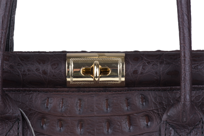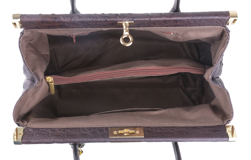 Tato kabelka zvaná též „doktorská“ se může pochlubit kromě svého klasického designu tím, že dobře drží tvar. Tato kožená kabelka je nositelná do ruky a uzavíratelná na patentek, který pak v případě potřeby můžete uzamknout přiloženým zámečkem. Jejím materiálem je pravá kůže ve cafe barvě s úpravou krokodýlí textury. Uvnitř najdete kapsu na zip a 2 malé kapsy vhodné např. pro Váš mobil a peněženku a uprostřed je látková přepážka také s kapsou na zip. Kabelka má navíc k tomu všemu kapsu na zip na vnější zadní straně. Hloubka jejího dna je 15 cm. Další barevné varianty naleznete zde.