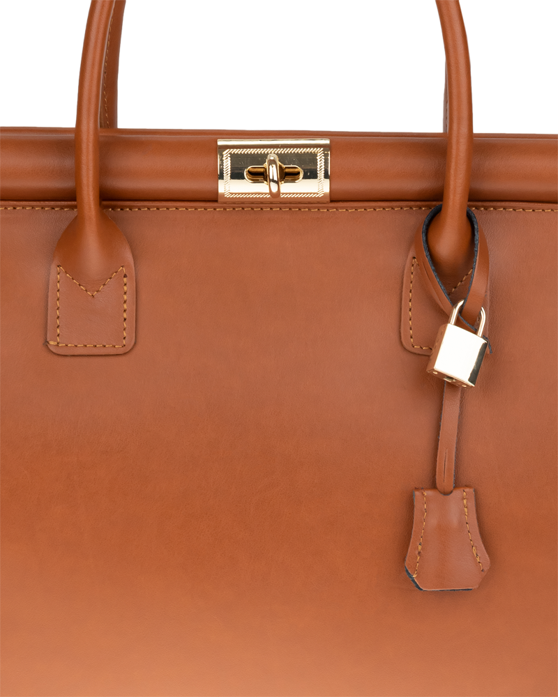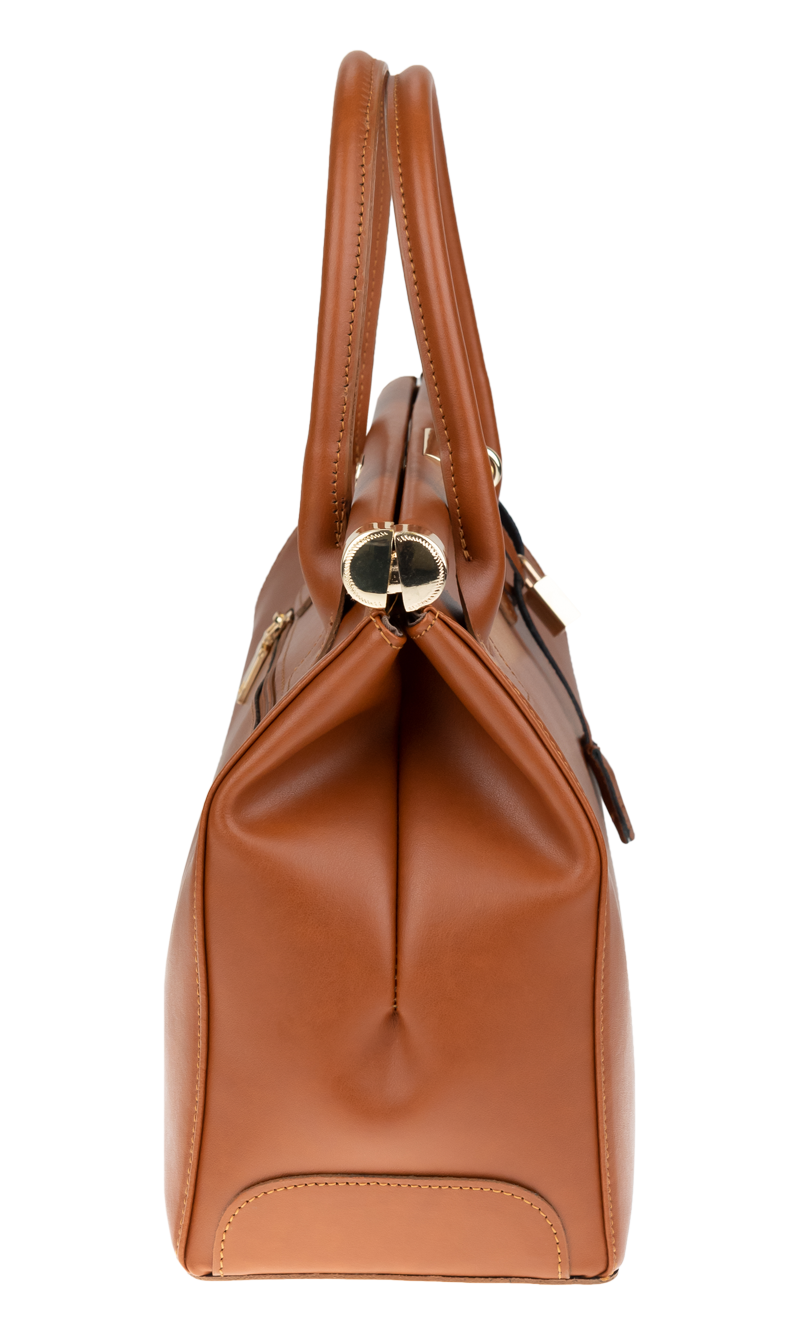 Tato kabelka zvaná též „doktorská“ se může pochlubit kromě svého klasického designu tím, že dobře drží tvar. Tato kožená kabelka je nositelná do ruky a uzavíratelná na patentek, který pak v případě potřeby můžete uzamknout přiloženým zámečkem. Jejím materiálem je pravá hladká kůže v barvě camel. Uvnitř najdete kapsu na zip a 2 malé kapsy vhodné např. pro Váš mobil a peněženku a uprostřed je látková přepážka také s kapsou na zip. Kabelka má navíc k tomu všemu kapsu na zip na vnější zadní straně. Hloubka jejího dna je 15 cm. Další barevné varianty naleznete zde.