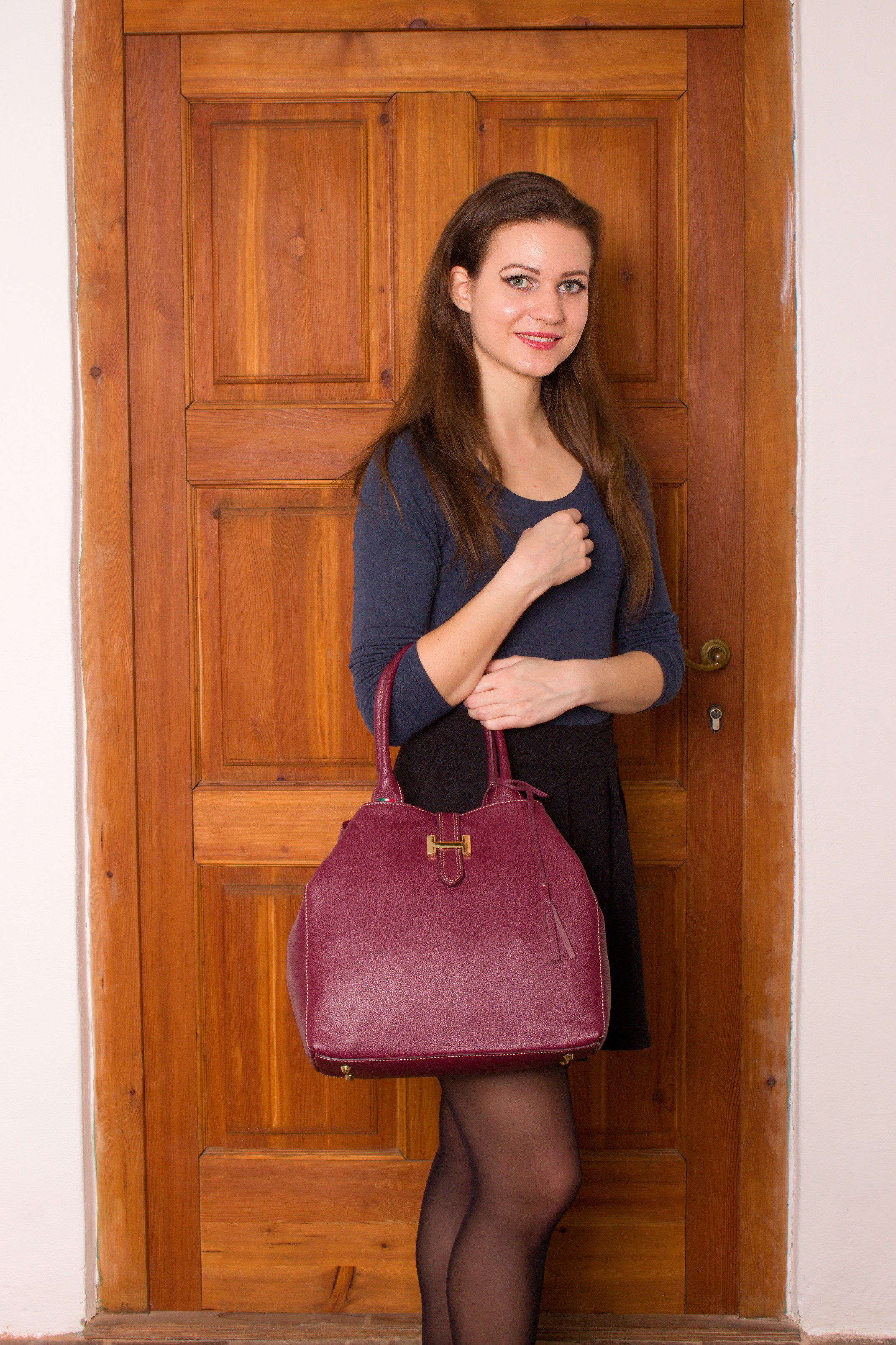 Nekonvenční a luxusní kabelka vyrobená z pravé měkké kůže. Získá si Vás svým zajímavým tvarem a způsobem svého uzavírání – patentkou na vnější straně, která zároveň slouží jako ozdoba. Kabelka je vhodná k nošení přes rameno a nabízí dostatek prostoru pro všechny potřebné věci. Uvnitř má kabelka dvě přihrádky na klíče či mobilní telefon a dvě kapsy na zip. Ke kabelce patří přídavný popruh o délce 100 cm.