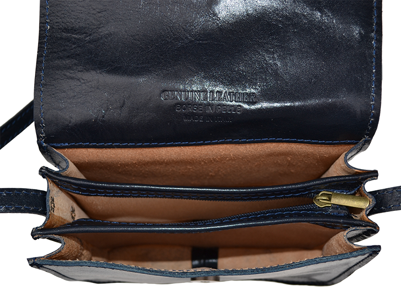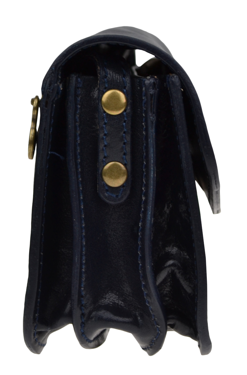 Malá šikovná kabelka se zajímavým tvarem. Kabelka je vyrobená z pravé kůže, která velice dobře drží svůj tvar. Je vhodná na nošení přes rameno nebo cross-body (křížem).