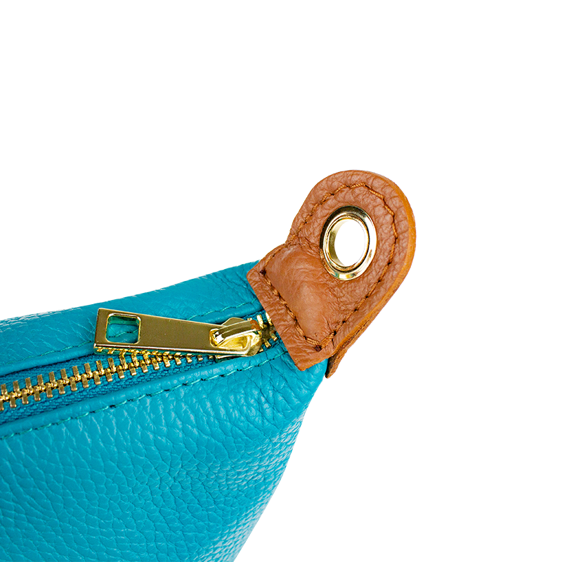 Praktická a prostorná kožená kabelka v tyrkysové barvě. Jednoduché provedení a velký prostor dělá tuto kabelku neobyčejně praktickou pro denní nošení. Vnitřek kabelky je vybaven kapsou na zip. Přídavný popruh 120 cm.