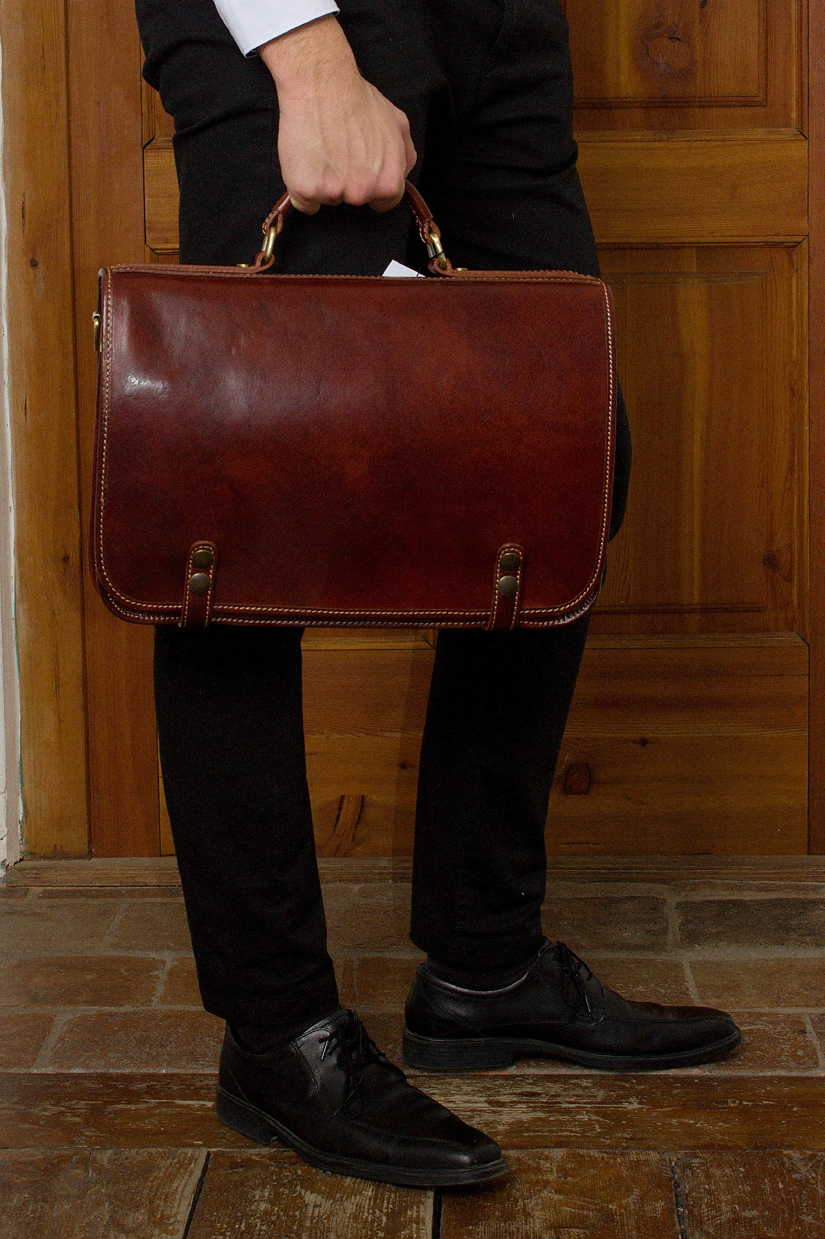 Aktovka v červeném provedení s netradičním zapínáním. Tato aktovka vyrobená z kvalitní kůže je uvnitř rozdělena do dvou přihrádek, které nabízí dostatek prostoru pro Vaše dokumenty. Samozřejmostí jsou přihrádky pro mobilní telefon, drobnosti a psací potřeby. …