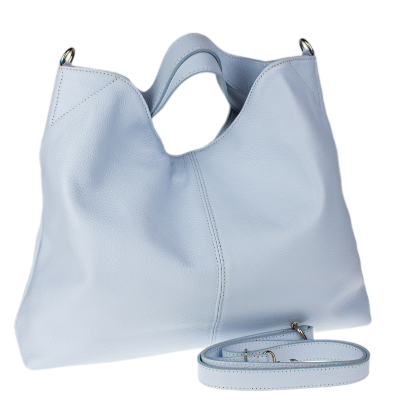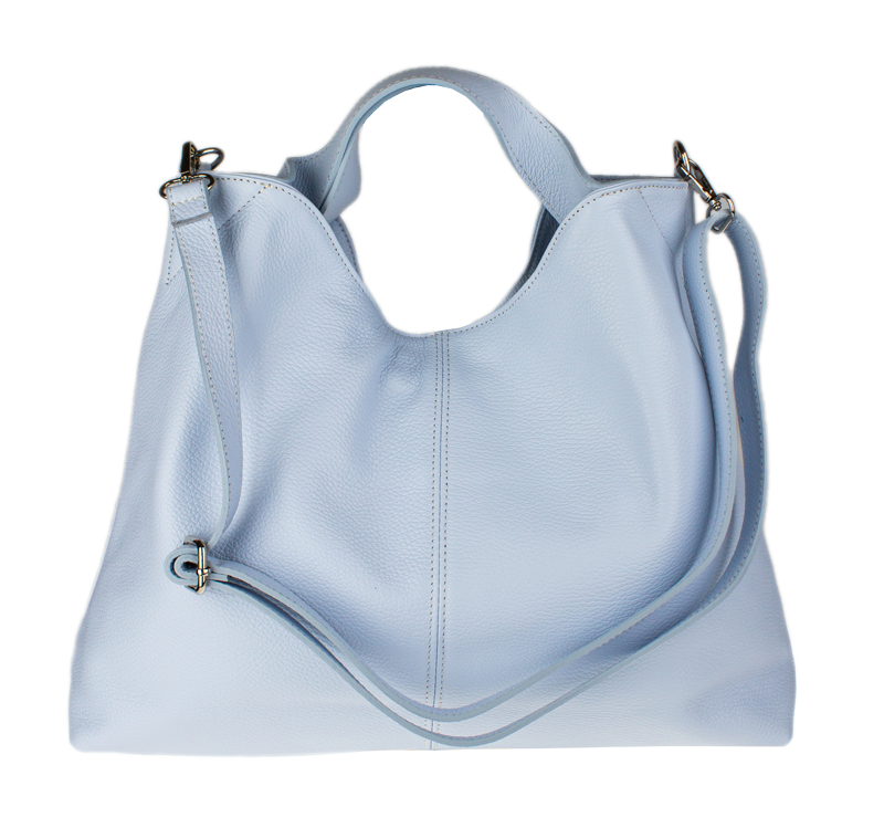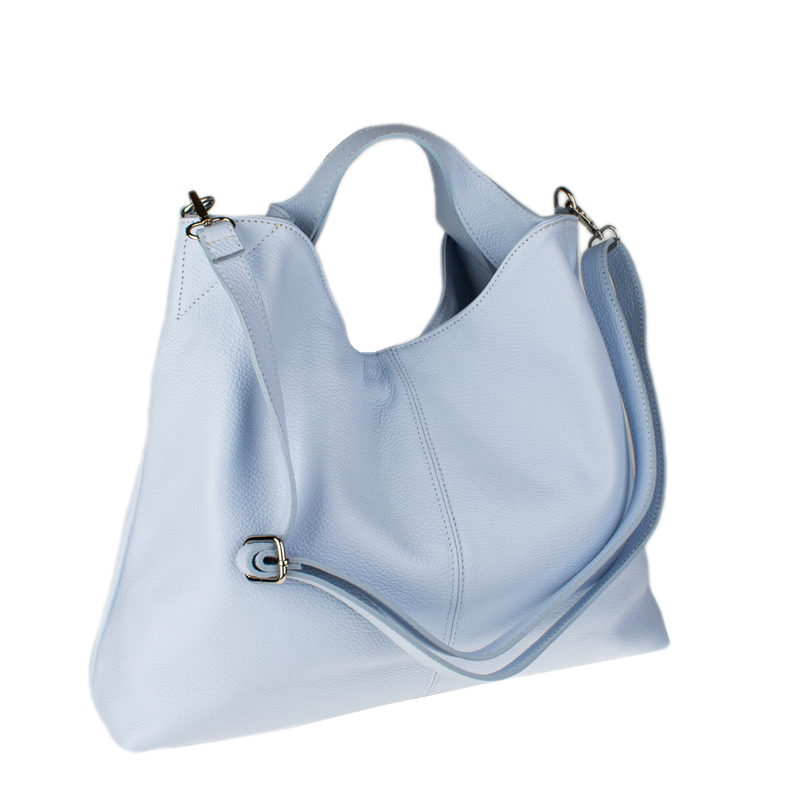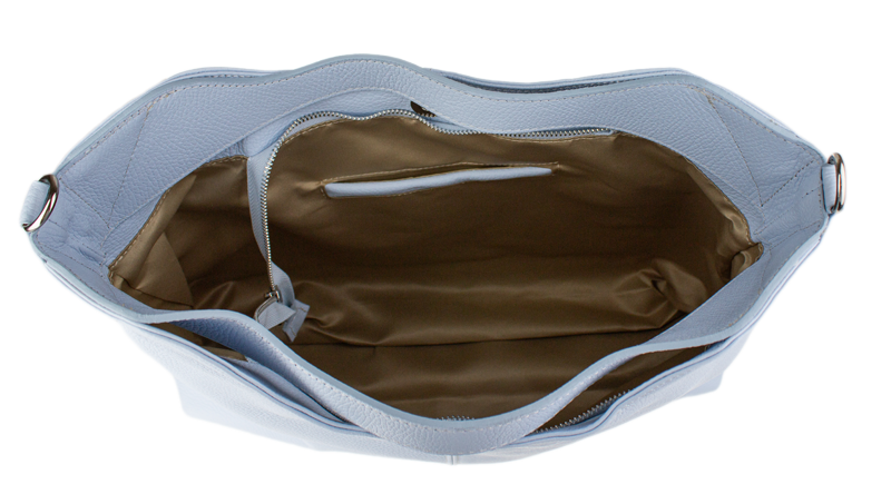 Elegantní kožená hobo kabelka v barvě nebeské modré.