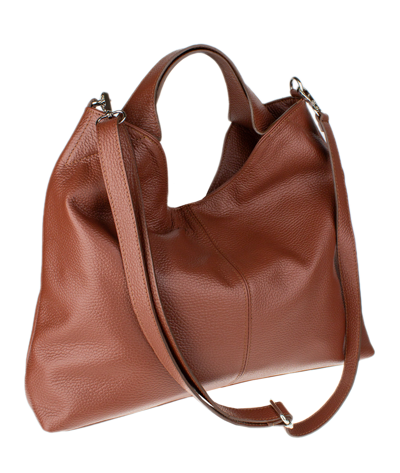 Hledáte dokonalou rovnováhu mezi stylem a praktičností? Tato prostorná dámská kabelka typu „hobo“ je vyrobena z prvotřídní pravé kůže s jemnou zrnitou texturou, která jí dodává luxusní vzhled a mimořádnou odolnost. Její nadčasový design v elegantním hnědém odstínu se snadno kombinuje s pracovním kostýmem i volnočasovým outfitem.