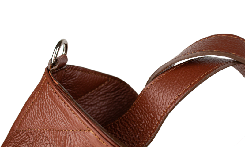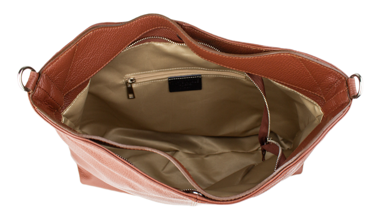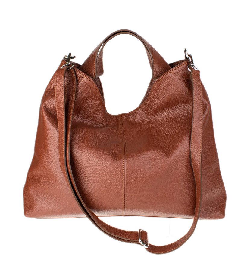 Elegantní kožená hobo kabelka v barvě hnědé.