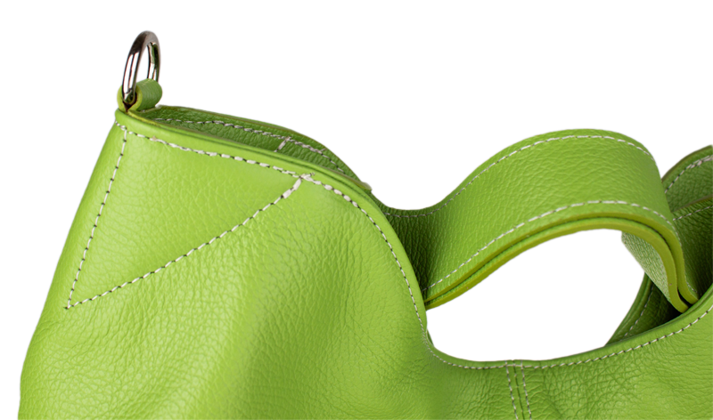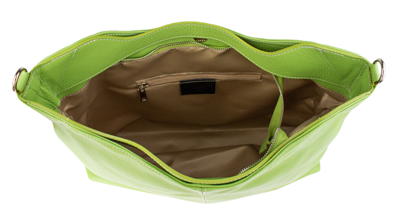 Elegantní kožená hobo kabelka v barvě jablečně zelené