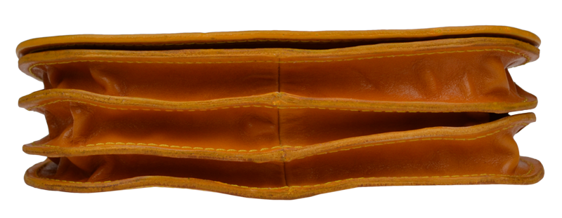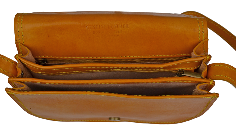 Malá šikovná kabelka se zajímavým tvarem. Kabelka je vyrobená z pravé kůže, která velice dobře drží svůj tvar. Je vhodná na nošení přes rameno nebo cross-body (křížem).
