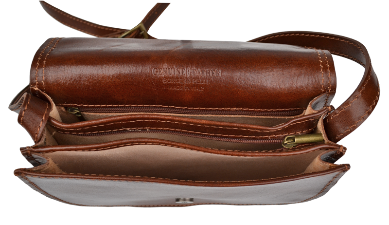 Malá šikovná kabelka se zajímavým tvarem. Kabelka je vyrobená z pravé kůže, která velice dobře drží svůj tvar. Je vhodná na nošení přes rameno nebo cross-body (křížem).