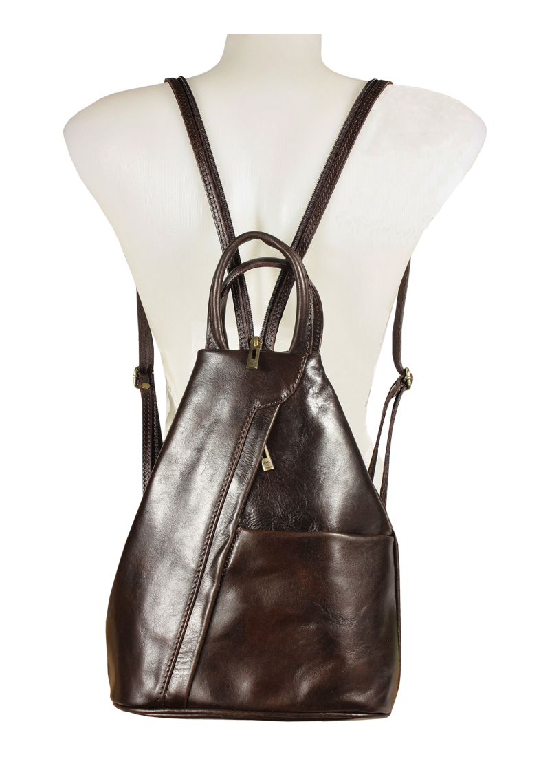 Jedinečný kožený batůžek v zelené barvě se zajímavým tvarem. Pěkně ho zdobí nenápadný detail na přední straně. Batůžek se otvírá zboku na zip. Velmi zajímavé jsou popruhy batohu, které se rozepínají na zip, čímž si můžete libovolně upravit způsob nošení batůžku.