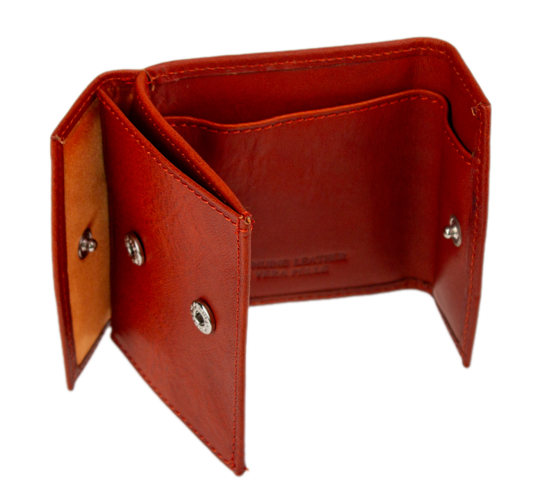 Dominantou je kapsa na mince (mincovník) zapínatelná na pevný cvok. Díky rozšířeným bokům se v ní snadno „přehrabuje“ a mince jsou hned po ruce. Po rozložení peněženky získáte přístup k dlouhé přihrádce na bankovky, do které se vejdou běžné bankovky bez nutnosti je složitě překládat.