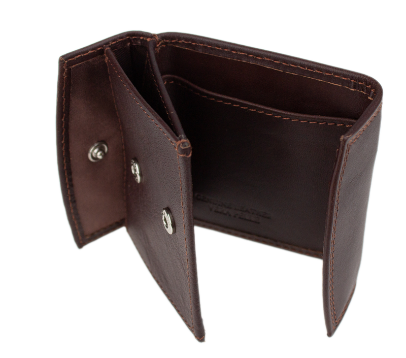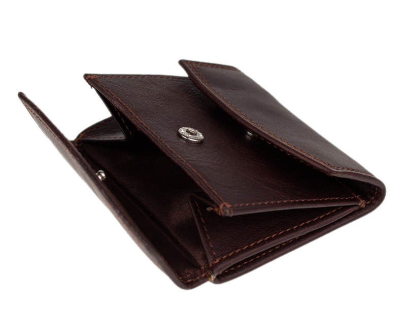 Dominantou je kapsa na mince (mincovník) zapínatelná na pevný cvok. Díky rozšířeným bokům se v ní snadno „přehrabuje“ a mince jsou hned po ruce. Po rozložení peněženky získáte přístup k dlouhé přihrádce na bankovky, do které se vejdou běžné bankovky bez nutnosti je složitě překládat.