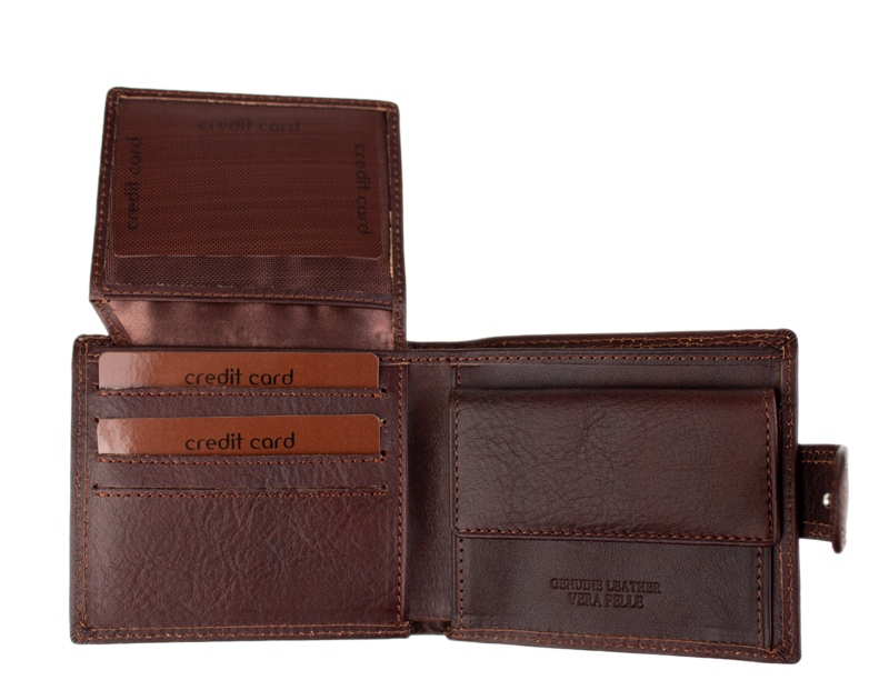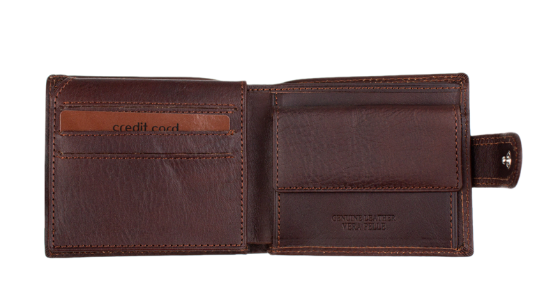 Elegantní unisex peněženka z pravé kůže v kompaktním rozměru. Nabízí bezpečné zapínání na druk, mincovník a praktickou výklopnou část na doklady a karty. Kvalitní dvojité prošívání zaručuje dlouhou životnost.