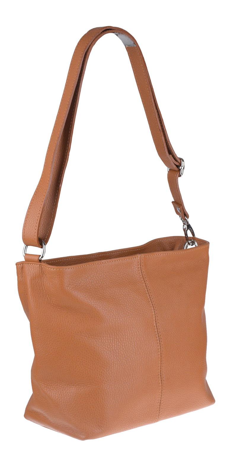 Camel kabelka nositelná přes rameno či cross-body (křížem). Tato kožená kabelka je uzavíratelná na zip. Uvnitř kabelky najdeme přepážku uprostřed, která zároveň slouží jako kapsa na zip, a na boční stěně pak kapsu na zip. Hloubka jejího dna je 13 cm. Kabelka má navíc nastavitelný popruh s maximální délkou cca 120 cm.