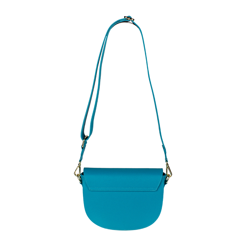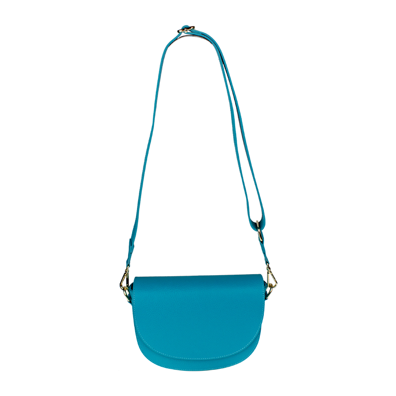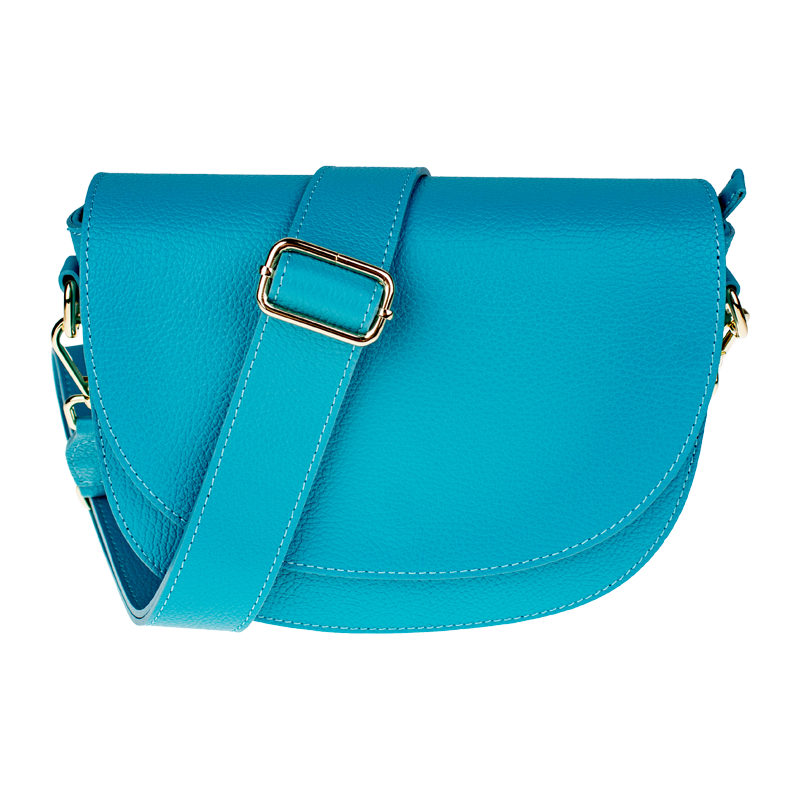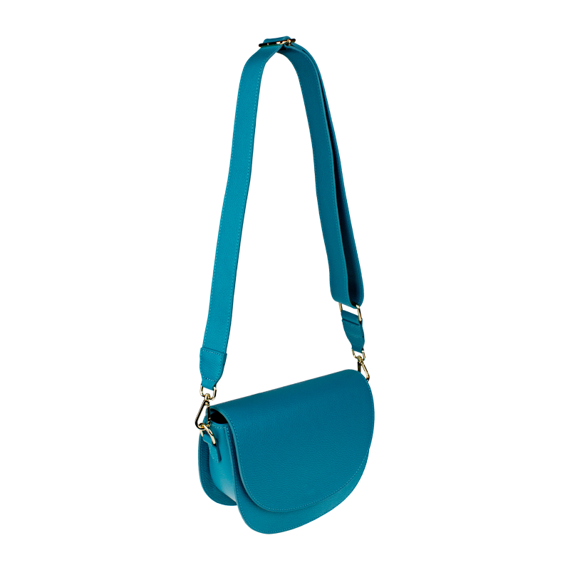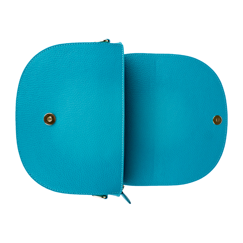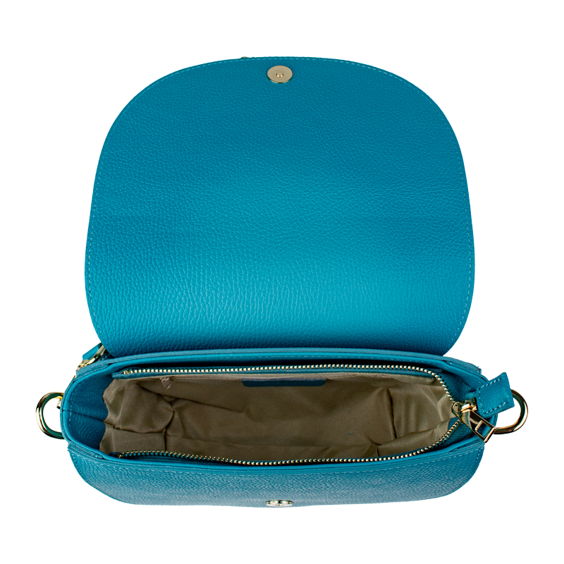 Modrá kabelka nositelná přes rameno či cross-body (křížem). Tato kožená kabelka je uzavíratelná na patentku a uvnitř nalezneme přihrádku na zip. Kabelka má nastavitelný popruh s maximální délkou cca 140cm.