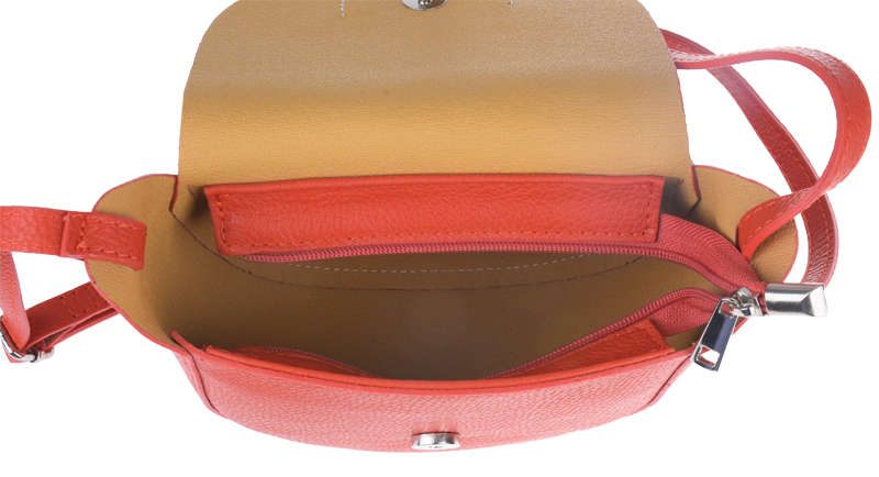Oranžová kabelka nositelná přes rameno či cross-body (křížem). Kabelka má nastavitelný popruh s maximální délkou cca 130 cm.