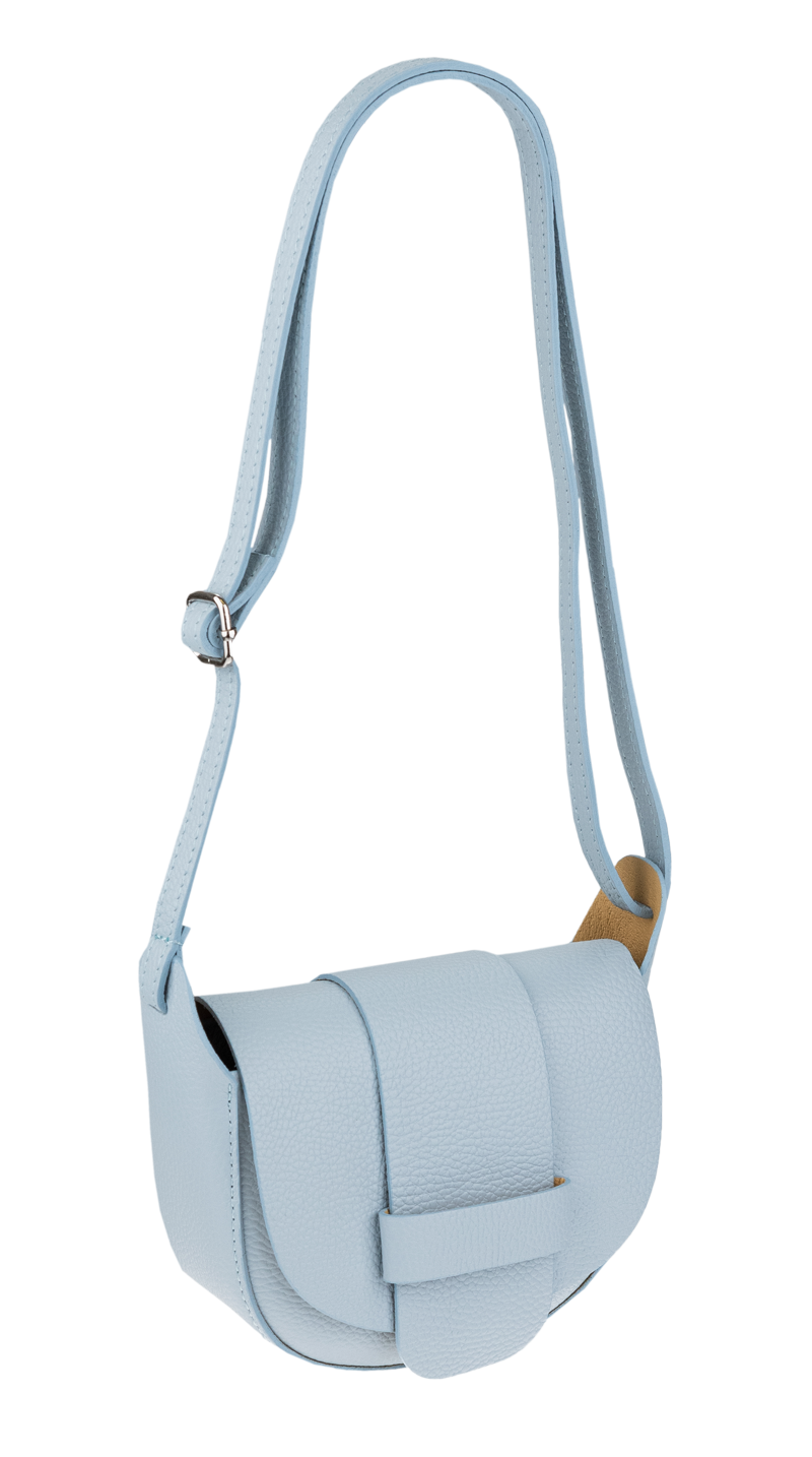 Světle-modrá kabelka nositelná přes rameno či cross-body (křížem). Kabelka má nastavitelný popruh s maximální délkou cca 130 cm.