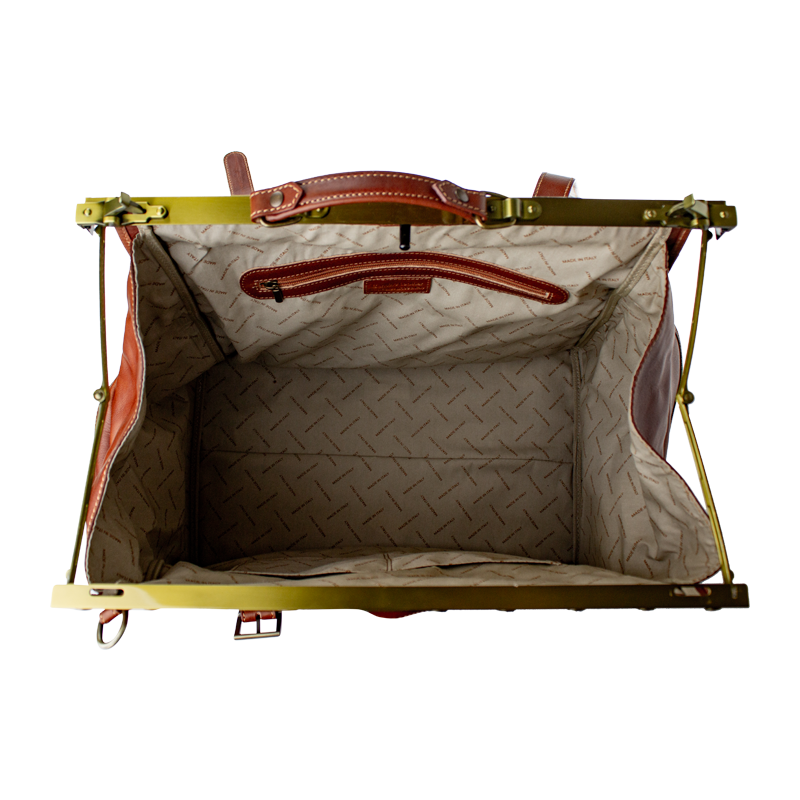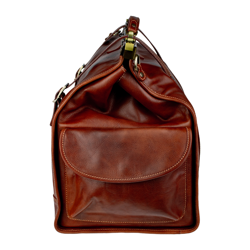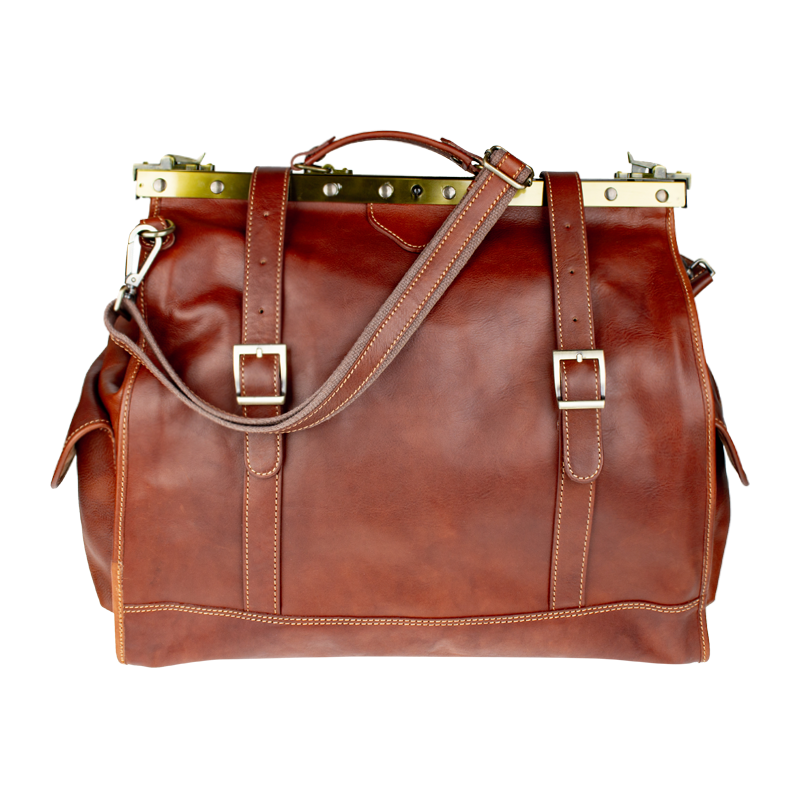 Luxusní cestovní taška vyrobená z kvalitní přírodní kůže, v hnědé barvě. Do této praktické cestovní tašky se Vám bez problému vejde vše, co potřebujete na cesty. Součástí tašky je přídavný popruh o délce 150 cm. Taška se uzavírá důmyslným originálním systémem.