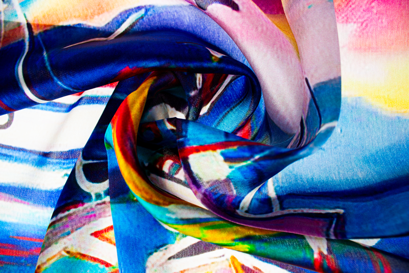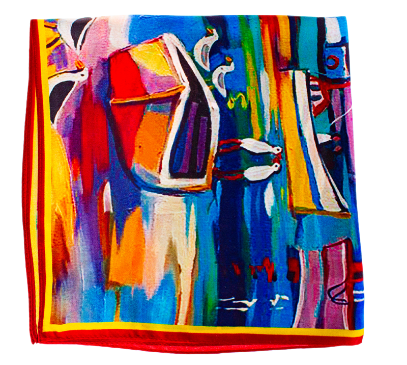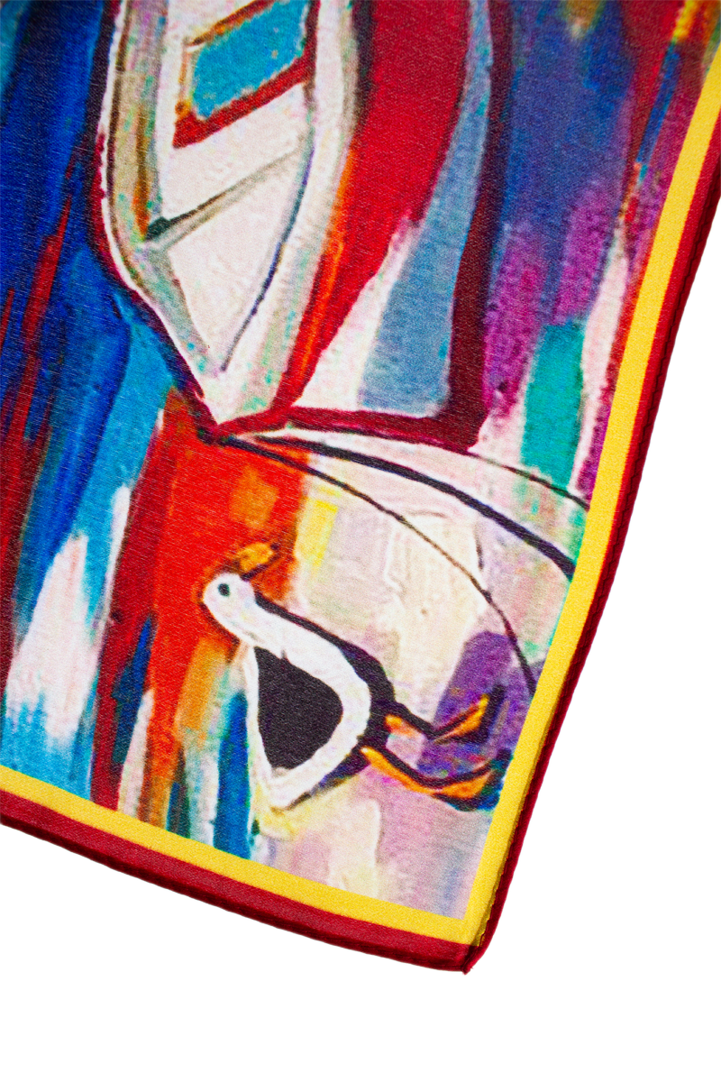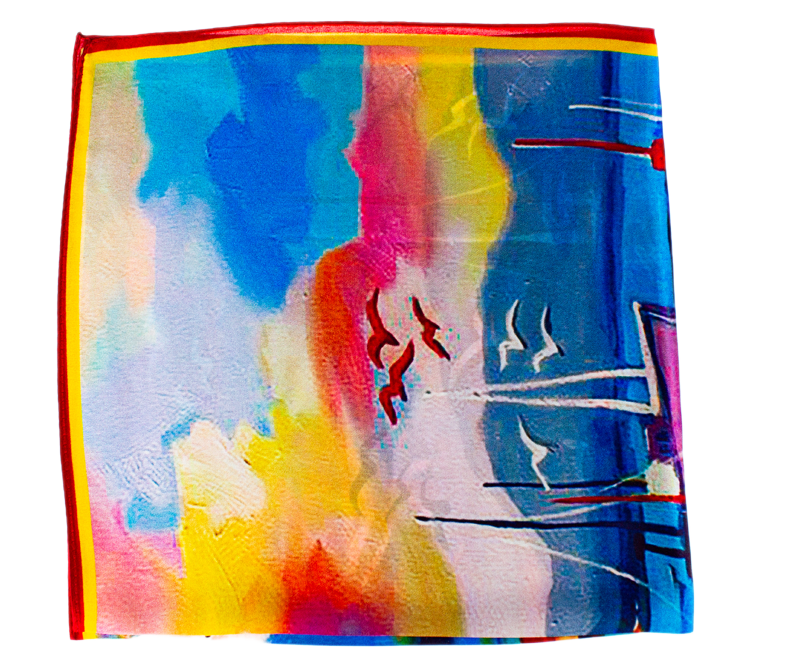 Malý elegantní šátek ze 100% hedvábí s jedinečným vzorem.