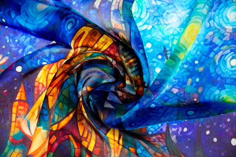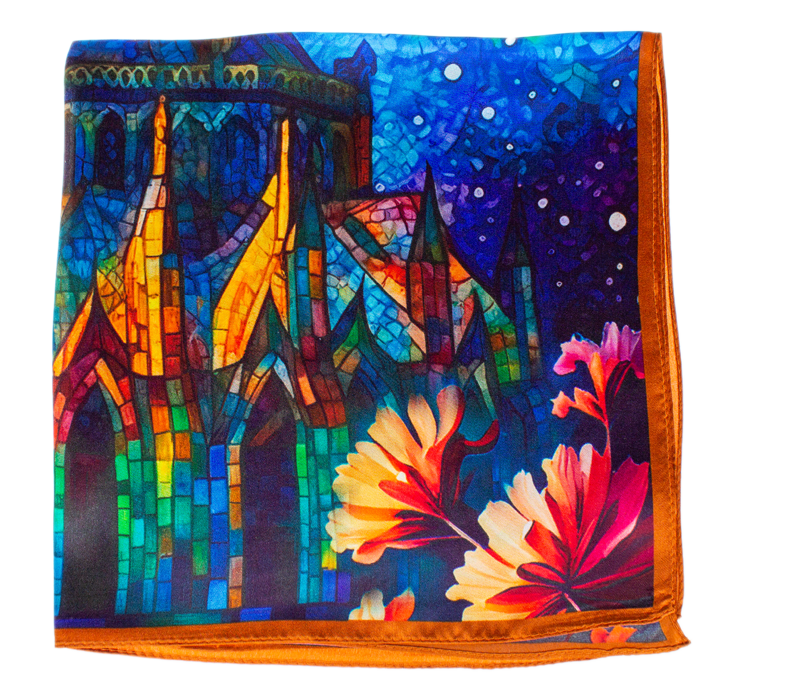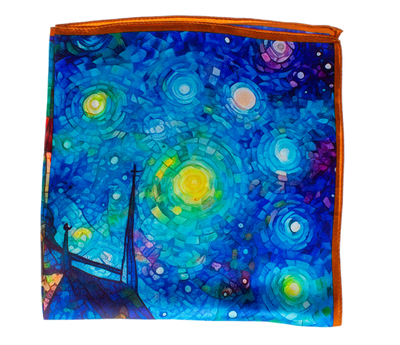 Malý elegantní šátek ze 100% hedvábí s jedinečným vzorem.