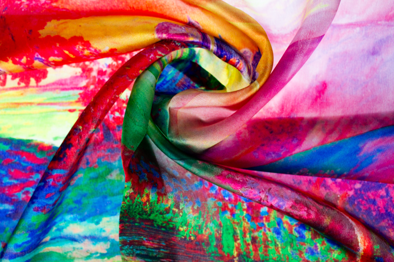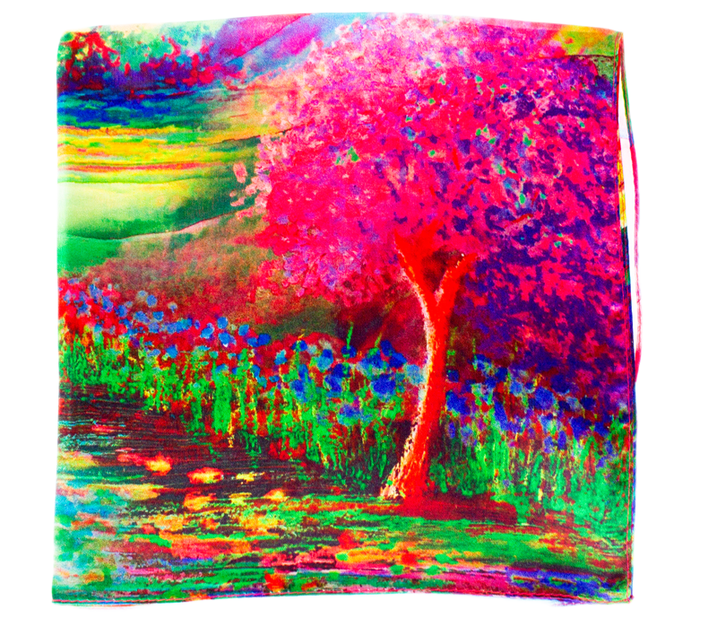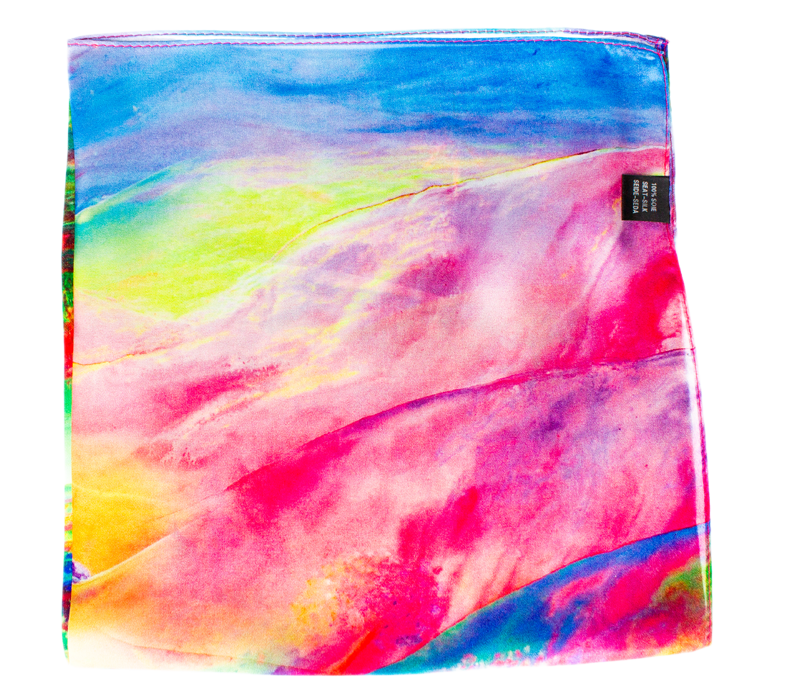 Malý elegantní šátek ze 100% hedvábí s jedinečným vzorem.