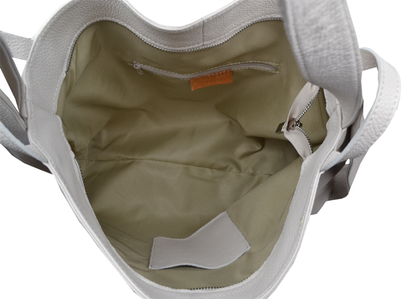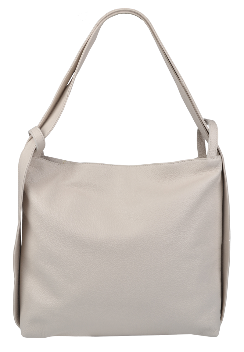Krásná kožená kabelka s jednoduchým designem v béžové barvě. Tato kožená kabelka je uzavíratelná pomocí zipu. Disponuje pohodlnými uchy dostatečné délky, takže jí lze nosit pohodlně přes rameno nebo jako batůžek. Pohodlně se do ní vejdou dokumenty formátu A4.