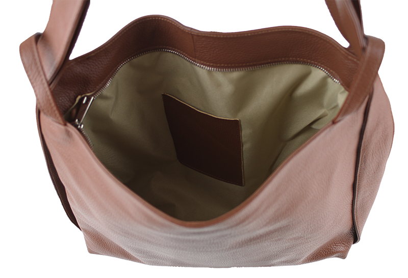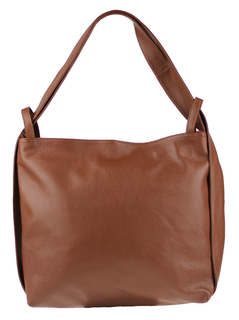 Krásná kožená kabelka s jednoduchým designem v hnědé barvě. Tato kožená kabelka je uzavíratelná pomocí zipu. Disponuje pohodlnými uchy dostatečné délky, takže jí lze nosit pohodlně přes rameno nebo jako batůžek. Pohodlně se do ní vejdou dokumenty formátu A4.