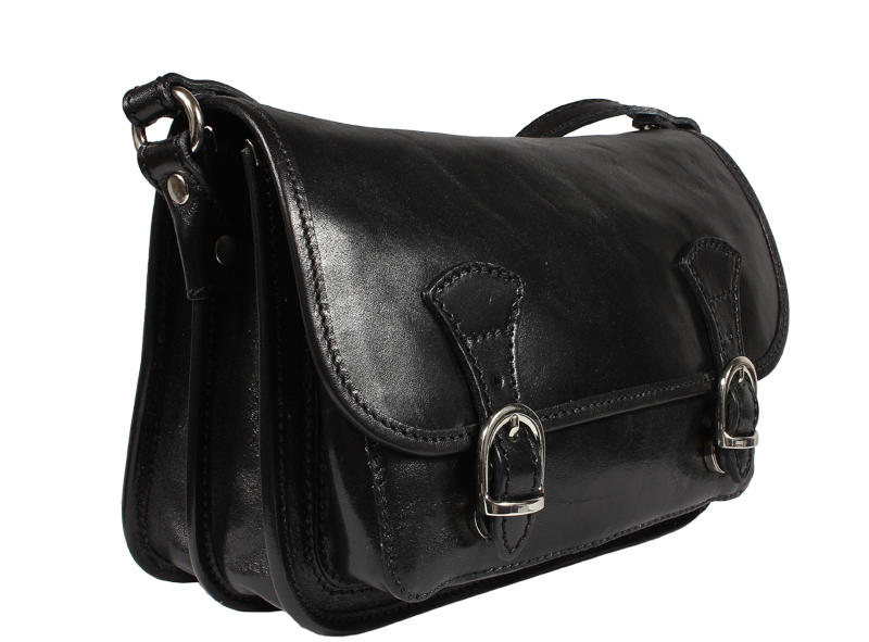 Kožená kabelka v černé barvě. Kabelka se uzavírá pomocí poklopu na patentky. Uvnitř kabelky jsou tři přihrádky a zavírací kapsa na zip. Délka popruhu je 120 cm. Další barevné varianty kabelky Spano naleznete zde.