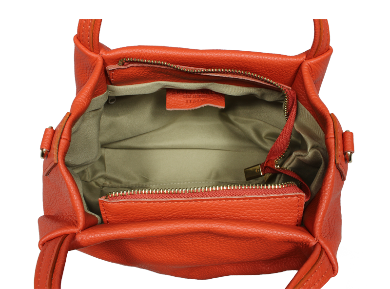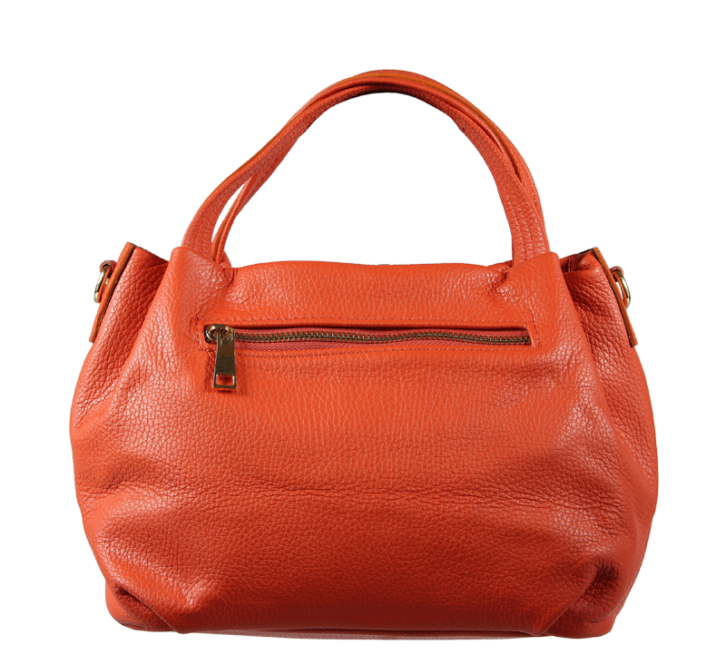 Elegantní a praktická oranžová kabelka nositelná cross-body (křížem) nebo v ruce. Tato kožená kabelka je uzavíratelná na zip. Uvnitř kabelky najdeme na boční stěně kapsu na zip a přihrádky pro mobil či klíče. Hloubka jejího dna je 13 cm. Kabelka má navíc nastavitelný popruh s maximální délkou cca 120 cm.
